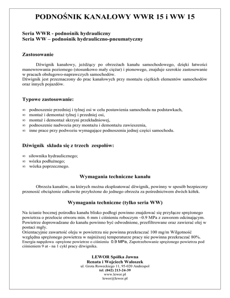 Podnosnik kanalowy WWR 15 i WW 15