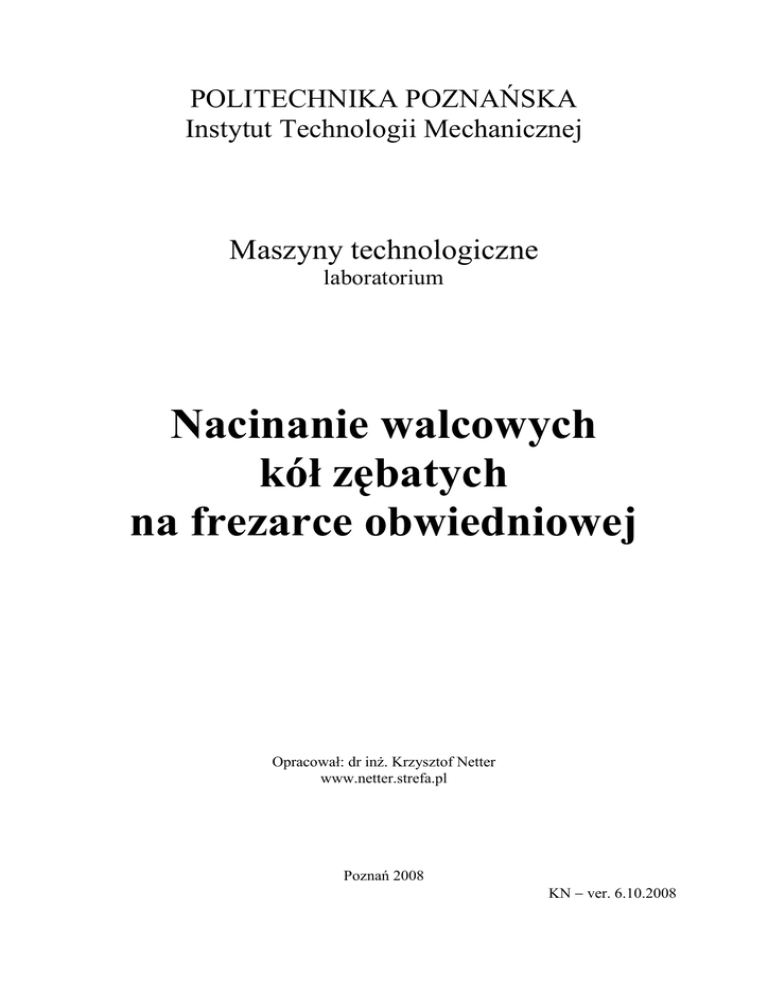 Nacinanie walcowych kół zębatych na frezarce obwiedniowej