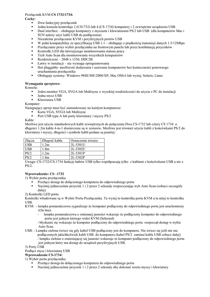 Instrukcja obsługi przełacznika KVM