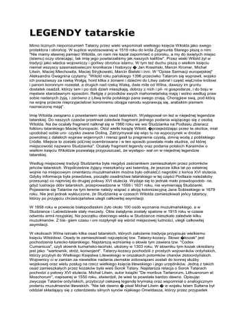 lokalnymi. Znacznie więcej istnieje legend polskich o wątku tatarskim, ale zagadnienie to wymaga