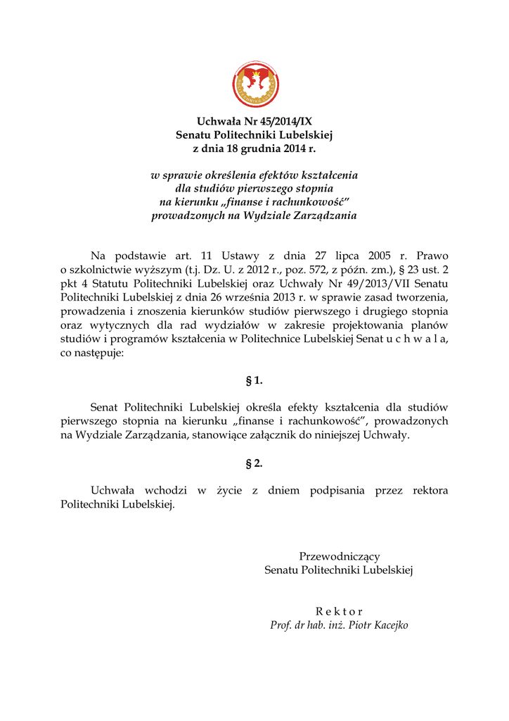Uchwała Nr 45-2014-IX w sprawie określenia efektów kształcenia