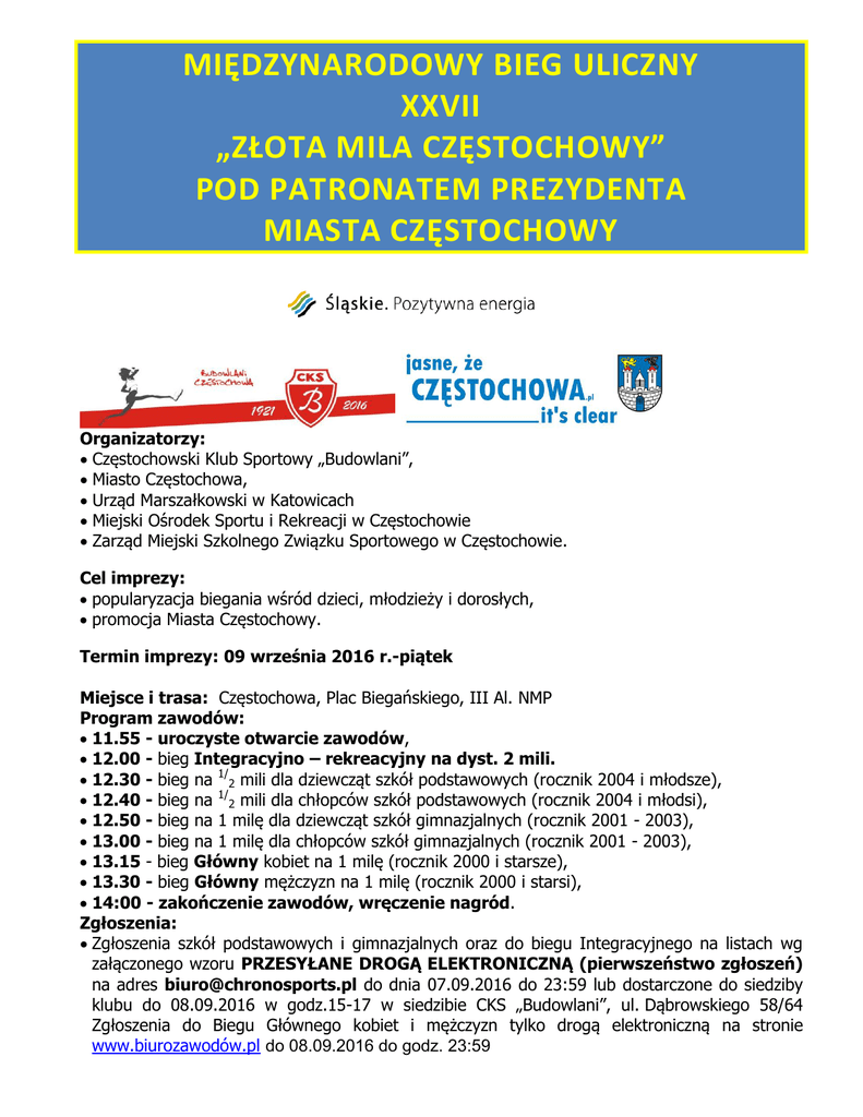 XXVII ?ZŁOTA MILA CZĘSTOCHOWY 9.09.2016 Częstochowa