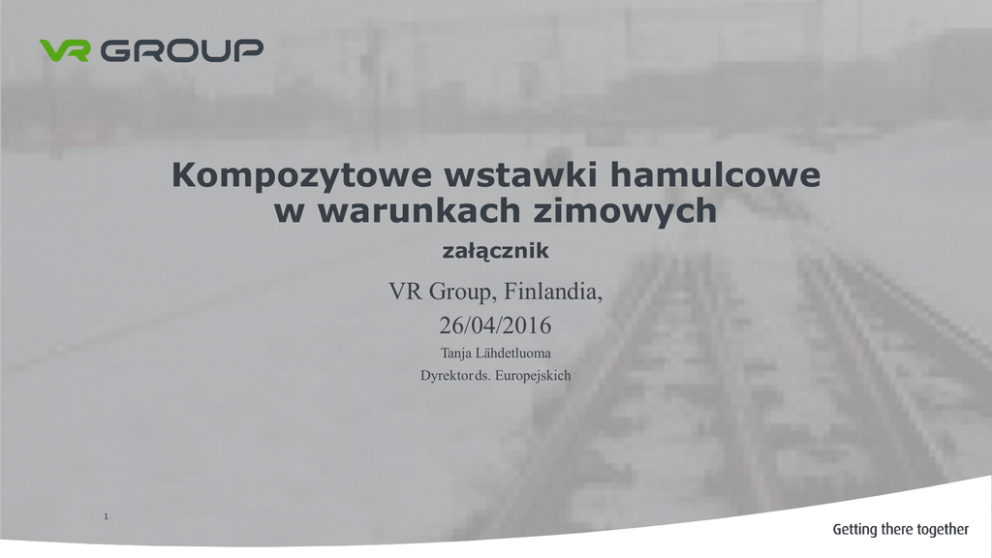 Kompozytowe wstawki hamulcowe w warunkach zimowych załącznik VR Group, Finlandia, 26/04/2016 Tanja Lähdetluoma Dyrektor ds. Europejskich 1 Opis Koło • Kompozytowe wstawki hamulcowe mają wpływ na bezpieczeństwo, co stwierdzono w Europie Północnej. • Pojawiające się zdarzenia oraz informacje zwrotne maszynistów wskazują na problem hamowania wagonów do przewozu drewna, zawierających wyłącznie kompozytowe wstawki hamulcowe. • Zdarzenia spowodowane są wydłużonym czasem hamowania w wyniku nagromadzonego śniegu i lodu. Podjęte działania Wstawka hamulcowa Zebrany lód i śnieg • Analiza raportu o zdarzeniach. • Analiza warunków pogodowych. • Analiza informacji z rejestratora danych (”czarna skrzynka”). • Ankieta wypełniona przez maszynistów. • Badanie możliwych rozwiązań technicznych. Nie znaleziono rozwiązania eliminującego problem Raport o zdarzeniach Warunki pogodowe Data 25.02.2016 15.02.2016 Temperatura - 7 °C, niewielkie opady śniegu. Słaba siła hamowania, brak bezpośredniego zagrożenia Temperatura -2 °C, tor Dłuższa droga hamowania, brak został oczyszczony ze bezpośredniego zagrożenia śniegu, umiarkowane opady śniegu. 02.02.2016 - 02.02.2016 - 26.01.2016 Opis zdarzenia - Trudność sprzęgania podczas prac manewrowych Niedozwolone przekroczenie sygnału STÓJ Pociąg zatrzymał się na wzgórzu. Z powodu słabej przyczepności, stoczył się Temperatura -15 °C, śnieg Słabe hamowanie na linii 22.01.2016 19.12.2015 29.01.2015 Temperatura 0 °C, śn ie g Pociąg nie zatrzymał się podczas prac manewrowych Śnieg na torach Pociąg zatrzymał się na wzgórzu; stoczył się 20.01.2015 - 16.01.2015 Temperatura -20 °C, ś n ie g 13.01.2015 Temperatura -22 °C . 05.01.2015 - Pociąg zatrzymał się na wzgórzu; stoczył się Szczegóły dotyczące hamowania Pociąg poruszał się z niską prędkością. Prędkość nie uległa zmniejszeniu podczas hamowania na łagodnym zboczu. Droga hamowania wyniosła ok. 2 km przy prędkości 60 km/h Mimo pełnego hamowania, pusty pociąg nie zatrzymał się podczas sprzęgania lokomotywy. Pomimo zainicjowanego hamowania, pociąg przekroczył sygnał STÓJ. Pociąg nie zatrzymał się pomimo hamowania. Stoczył się ok. 150 m po hamowaniu awaryjnym. Hamowanie rozpoczęto 1000 m przed sygnałem STÓJ przy prędkości 40 km/h. Siła hamowania zadziałała 450 m przed sygnałem STÓJ. Pociąg zatrzymał się 130 m przed sygnałem. Pociąg podczas prac manewrowych stoczył się z nachylenia. Zatrzymał się po 200 m od podjęcia hamowania awaryjnego. Pociąg stoczył się 200 m pomimo hamowania awaryjnego Pociąg stoczył się 200 m pomimo hamowania awaryjnego Długa droga hamowania podczas prac manewrowych Droga hamowania 200 m przy prędkości 10 km/h Długa droga hamowania podczas prac manewrowych Niedozwolone przekroczenie sygnału STÓJ Droga hamowania 400 m przy prędkości km/h Droga hamowania 300 m przy prędkości 35 km/h Public Ocena hamowania Informacja zwrotna maszynistów 18 • Maszyniści zostali poproszeni o ocenę hamowania pojazdów z wagonami przy kompozytowych wstawkach hamulcowych; • Wyniki ankiety elektronicznej zebrane zostały między 10 lutym a 6 kwietnia 2016 r. • Otrzymano 23 odpowiedzi maszynistów, poruszających się pojazdami do przewozu drewna zarówno przy jazdach manewrowych jak i pociągowych. • 16 z 23 maszynistów określiło hamowanie przy kompozytowych wstawkach hamulcowych, jako słabe. 16 14 12 10 8 6 4 2 0 Dobre Normalne Zadowalające Słabe Większość maszynistów uznała hamowanie przy kompozytowych wstawkach hamulcowych, jako słabe Brak opinii Analiza informacji z rejestratora danych Rzeczywiste opóźnienie w warunkach zimowych vs. nominalne opóźnienie wagonów do przewozu drewna 8 W większości przypadków występowało słabe 7 6 hamowanie • • • • 5 4 • 3 • 2 1 0 • Analiza informacji zebranych w Lutym 2016 r. Dane zebrano z pojazdów do przewozu drewna z kompozytowymi wstawkami hamulcowymi. Przedstawiono dane z 20 przypadków, w których nieustanne hamowanie trwało dłużej niż 5 sekund. Rzeczywiste opóźnienie pociągu vs. opóźnienie nominalne (zgodnie ze wskaźnikami systemu ATC). Wartości nominalne wskazują maksymalny dopuszczalny dystans hamowania, przy określonej prędkości. Gradient toru i ciśnienie przewodu hamulcowego zostały uznane w obliczeniach, jako okoliczności łagodzące. Oznacza to, że faktyczna skuteczność hamowania mogła być niższa, niż wskazana na wykresie. Czerwone słupki wskazują przedłużoną drogę hamowania. Mniej niż 40% wskazuje na bardzo niską zdolność hamowania. 13 na20 wskazanych przypadków miało wydłużoną drogę hamowania, co oznacza, że skuteczność hamowania była niższa niż dozwolona. 7 na 20 wskazanych przypadków miała przepisową drogę hamowania. Skuteczność hamowania nie jest tym samym uzależniona od maszynisty. Istnieje jednocześnie ryzyko nagłej utraty zdolności hamowania. Rzeczywiste opóźnienie w stosunku do nominalnej wartości minimalnej Public Badanie możliwych rozwiązań technicznych • VR Group sp. z o.o. w 2014 r. rozpoczęła działalność przewozu drewna przy pomocy pociągów wyposażonych w wagony wyłącznie z kompozytowymi wstawkami hamulcowymi. Wcześniej eksploatowano pojazdy z wagonami: częściowo wyposażonymi w kompozytowe wstawki hamulcowe, częściowo żeliwne klocki hamulcowe. Problemy skuteczności hamowania nie pojawiał się przy zestawianiu wagonów obydwu rodzajów. • Na podstawie raportów z zaistniałych zdarzeń stwierdzono, że konkretne typy lokomotyw i wagonów, wiek ani doświadczenie maszynistów, nie miały wpływu na przedmiotowe zdarzenia. • Wskazując na doświadczenia z zimy 2014/2015, problem starano się rozwiązać technicznie i operacyjnie. Pociąg do przewozu drewna złożony jest z lokomotywy i 22 wagonów towarowych. • • Typ hamulców w wagonach do przewozu drewna został zmieniony 