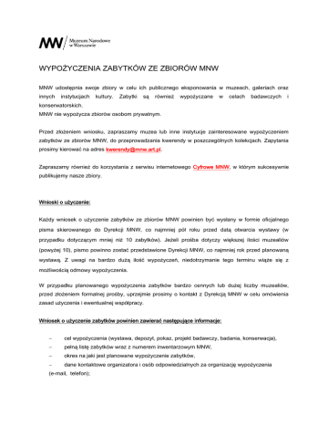 WYPOŻYCZENIA ZABYTKÓW ZE ZBIORÓW MNW