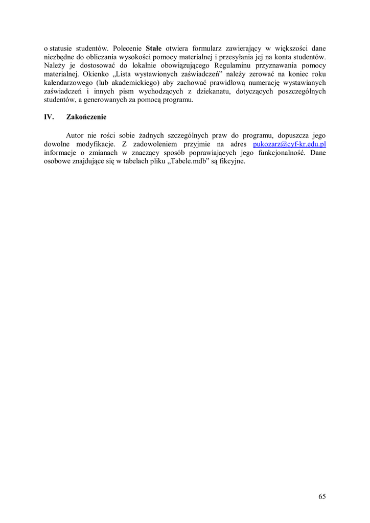 65 o statusie studentów. Polecenie Stałe otwiera formularz