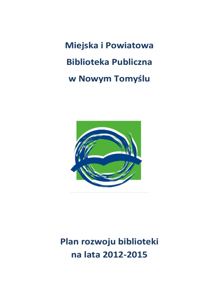 Miejska i Powiatowa Biblioteka Publiczna w Nowym Tomyślu Plan rozwoju biblioteki na lata 2012-2015 I. Wizytówka biblioteki Miejska i Powiatowa Biblioteka Publiczna w Nowym Tomyślu zlokalizowana jest w mieście powiatowym o 200.letniej historii-położonym w zachodniej części woj. wielkopolskiego (60 km na zachód od Poznania). Zasięgiem działania obejmuje miasto (14 892 mieszkańców) i gminę (25 036 mieszkańców), a także w ramach tzw. zadań ponadlokalnych powiat, sprawując opiekę merytoryczną nad 5 placówkami miejsko-gminnymi na terenie powiatu. W nowotomyskiej bibliotece i jej 5 filiach wiejskich zatrudnionych jest 16 bibliotekarek (w tym 5 niepełnozatrudnionych na filiach). Dysponuje obiektem o 865 m² pow. użytkowej (w tym nowoczesną salą wystawowo-konferencyjną), 35 stanowiskami komputerowymi; w tym 17 z bezpłatnym dostępem do Internetu ( także WI-FI) oraz Zintegrowanym Systemem Zarządzania Biblioteką SOWA2/MARC21 pozwalającym na pełne zautomatyzowanie wszystkich procesów bibliotecznych. W 2011 r. odnotowała: 22 906 użytkowników i 79 582 odwiedzin. Zarejestrowała 5907 czytelników (23,6 na 100 mieszkańców); w tym 62,5% dzieci i młodzieży (włącznie ze studentami), 32,8% osób aktywnych zawodowo i 4,7% seniorów. Oprócz zbiorów książek oferuje: audiobooki, czasopisma, regionalia i zbiory ikonograficzne. Zachęcamy do kontaktu: Miejska i Powiatowa Biblioteka Publiczna w Nowym Tomyślu Witosa 8 , 64-300 Nowy Tomyśl Lucyna Maria Kończal-Gnap Email: [email protected], [email protected] Telefon: 614421277, 614421271 II. Potencjał biblioteki Analiza SWOT Mocne strony biblioteki 1. Łatwy – wskutek rozwiniętej i właściwie rozlokowanej sieci placówek bibliotecznych - dostęp mieszkańców gminy do biblioteki. 2. Dobra lokalizacja biblioteki głównej i większości filii ( centrum miejscowości, dogodny dojazd, w pobliżu miejsca parkingowe). 3. Dobre warunki lokalowe biblioteki głównej, pozwalające - w sposób nie kolidujący z działalnością podstawową – prowadzić działalność kulturalnoedukacyjną. Na powierzchni 862 m2 mieszczą się: Wypożyczalnia dla Dorosłych, Czytelnia Ogólna, Oddział dla Dzieci, Dział Zbiorów Regionalnych, Dział Gromadzenia i Opracowania Zbiorów, sala wystawo-konferencyjna, pomieszczenia biurowe i magazyny. 4. 5. Dostosowane do potrzeb czytelników godziny otwarcia placówek bibliotecznych. Biblioteka główna czynna jest od poniedziałku do piątku w godz. 9.00 – 18.00, w soboty w godz. 10.00 – 14.00. Filie biblioteczne czynne są przez przynajmniej 30 godz. tygodniowo. Doświadczona, stabilna i wykształcona w zakresie bibliotekarstwa kadra bibliotekarzy. Wykształcenie wyższe Słabe strony biblioteki 1.Niski standard niektórych pomieszczeń bibliotecznych wymagających remontów, modernizacji. Odczuwalne braki w wyposażeniu w nowoczesne meble biblioteczne i sprzęt. W bibliotece głównej zwłaszcza: mała funkcjonalność pomieszczeń Ośrodka Wiedzy o Regionie uniemożliwiająca swobodne korzystanie z regionaliów, brak szatni dla czytelników i zaplecza socjalnego dla pracowników, zbyt małe pomieszczenia magazynowe. Konieczność modernizacji pomieszczeń 2 filii bibliotecznych. 2. Niezupełna likwidacja barier architektonicznych w placówkach bibliotecznych. Brak windy umożliwiającej swobodny dostęp na najwyższą kondygnację biblioteki głównej, gdzie mieszczą się Czytelnia Ogólna, Dział Zbiorów Regionalnych i sala wystawowo-konferencyjna. 3. Powolny proces komputeryzacji filii bibliotecznych uniemożliwiający stworzenie gminnej komputerowej sieci bibliotecznej. 4. Niewystarczająca skuteczność w pozyskiwaniu środków zewnętrznych, pozabudżetowych. magisterskie – 11 bibliotekarzy, wykształcenie wyższe zawodowe – 2 bibliotekarzy, pomaturalne studium bibliotekarskie – 2 bibliotekarzy, wykształcenie średnie – 1 bibliotekarz. 6. 7. Duża ilość czytelników mieszkańców). (23,6 % 8. Stały i systematyczny dopływ nowości wydawniczych (wskaźnik zakupu nowości wydawniczych w 2011 r. - 11,3 woluminy w przeliczeniu na 100 mieszkańców). 9. Posiadanie zbiorów specjalnych (dokumenty życia społecznego, zbiory ikonograficzne). 10. Usługa „książka na telefon” adresowana do osób starszych, chorych i niepełnosprawnych w książki dostarczane są do ich domów. 11. Zintegrowana sieć komputerowa w bibliotece głównej, pozwalająca na automatyzację wszystkich procesów bibliotecznych. 12. Bezpłatny dostęp do Internetu w bibliotece głównej i wszystkich filiach. 13. Własny internetowy 6.Niedostateczny wewnętrznych. 7.Brak stałego sponsoringu. system analiz strategicznego 8.Mała ilość zbiorów multimedialnych. Bogaty księgozbiór o zróżnicowanej strukturze dostosowanej do różnych kategorii odbiorców. Księgozbiór biblioteki - łącznie z filiami - na koniec 2011r. na 100 mieszkańców gminy przypada 426 woluminów. W strukturze zbiorów dominują: literatura niebeletrystyczna (41, 4 %), literatura piękna dla dzieci i młodzieży (30 %) i literatura piękna dla dorosłych (28%). serwis 5. Brak wolontariatu. z 9.Skromne zbiory obcojęzyczne. 10.Brak gratyfikacji finansowej dla bibliotekarzy osiągających kolejny szczebel awansu zawodowego. katalogami on-line. 14. Bogata oferta kulturalno-edukacyjna adresowana do różnych – wiekowych, społecznych i zawodowych - grup odbiorców. 15. Dobrze układająca się współpraca z lokalnym samorządem, placówkami oświatowymi, instytucjami, organizacjami i stowarzyszeniami oraz lokalnymi mediami. 16. Prężne grono Biblioentuzjastów działających w ramach Gminnej Koalicji na rzecz Rozwoju Biblioteki, do której przystąpiło już 70 partnerów biblioteki. 17. Duża ilość zrealizowanych wspólnie z Biblioentuzjastami projektów kulturalnych, edukacyjnych i integrujących społeczność lokalną wokół biblioteki. 18. Brak konkurencji ze strony innych bibliotek Na obszarze swojego działan