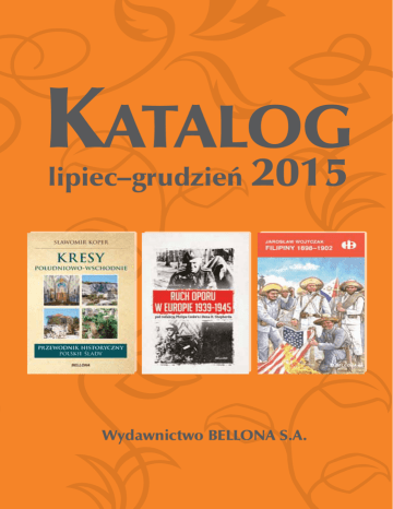 KATALOG 2015 lipiec–grudzień Wydawnictwo BELLONA S.A. KATALOG WYDAWNICZY BELLONA l i p i e c ̶ g r u d z i e ń 2 0 1 5 r. 1 2 - BELLONA 2015 - SPIS TREŚCI WSTĘP .............................................................................. str. 5 HISTORYCZNE BITWY ........................................................ str. 7 SERIA HISTORIA ...............................................................str. 12 WOJENNA MACHINA HITLERA ...........................................str. 15 ZBRODNICZE FORMACJE ...................................................str. 18 HISTORIA POLSKI .............................................................str. 22 HISTORIA ŚWIATA ............................................................str. 25 II WOJNA ŚWIATOWA .......................................................str. 30 MILITARIA ........................................................................str. 36 HISTORIA OBYCZAJU ........................................................str. 39 BIOGRAFIE I WSPOMNIENIA .............................................str. 41 • IWONA KIENZLER .......................................................str. 44 • JAROSŁAW MOLENDA..................................................str. 48 • JERZY BESALA ............................................................str. 50 • KATARZYNA WALENTYNOWICZ ....................................str. 52 • SŁAWOMIR KOPER ......................................................str. 55 • HENRYK MĄKA ............................................................str. 58 BELETRYSTYKA .................................................................str. 60 PERŁY LITERATURY ...........................................................str. 67 PERŁY LITERATURY MŁODZIEŻOWEJ .................................str. 69 ALBUMY/LEKSYKONY.........................................................str. 73 PORADNIKI.......................................................................str. 80 DLA DZIECI ......................................................................str. 89 SERIA ILUSTROWANYCH ALBUMÓW...................................str. 95 KALENDARZE I CZASOPISMA .............................................str. 99 OFERTA HANDLOWA ....................................................... str. 107 K ATA L O G W Y D AW N I C Z Y V I I-X I I 2 0 1 5 AUTORZY .........................................................................str. 45 3 WSTĘP Szanowni Państwo, rok 2015 jest dla Bellony rokiem szczególnym. Jeszcze trzy lata i minie setna rocznica powołania firmy. Od tak dawna staramy się służyć – najlepiej jak umiemy – polskiej książce i polskim czytelnikom, najpierw jako oficyna o charakterze ściśle wojskowym, obecnie jako wydawca uniwersalny. Nawiązujemy do szczytnych tradycji przedsięwzięć wydawniczych II Rzeczypospolitej – periodyku „Bellona”, Wojskowego Instytutu Naukowo-Wydawniczego, Wojskowego Instytutu Naukowo-Oświatowego. W okresie powojennym książki Wydawnictwa Ministerstwa Obrony Narodowej trafiły do szerokich rzesz czytelniczych, promując wiedzę o historii, literaturę wojenną, nauki teoretyczno--wojskowe. W tym samym okresie inne wydawnictwo wojskowe – „Czasopisma Wojskowe” – w dużych nakładach publikowało i kolportowało pisma związane z MON. Połączenie obu firm nastąpiło już po przekształceniach ustrojowych i wówczas też nastąpił imponujący wzrost w zakresie liczby wydawanych tytułów. Po prywatyzacji Bellony nie wiążą już z wojskiem formalne zależności, niemniej jednak publikacje o charakterze historycznym i militarnym nadal stanowią znaczącą część naszej oferty programowej. Staramy się jednak z coraz większym powodzeniem docierać do czytelników pozostających do tej pory poza zasięgiem naszych zainteresowań – poprzez popularną liteW drugim półroczu 2015 roku kontynuowana będzie seria Historyczne bitwy, która od z górą trzydziestu lat z powodzeniem wypełnia swoją misję – rozszerzania wiedzy historyczno-wojskowej, zwłaszcza wśród młodych czytelników. Ukażą się w niej m. in.: POŁABIE 983 Roberta F. Barkowskiego, FILIPINY 1898 Jarosława Wojtczaka, MANZIKERT 1071 Stanisława Reka. Kontynuować będziemy nową serię Wojenna machina Hitlera, w której ukażą się m. in.: NIEMIECKA OBRONA PRZECIWLOTNICZA W II WOJNIE ŚWIATOWEJ i PARAMILITARNE ORGANIZACJE NAZISTOWSKIE. Dużą wagę przykładamy do popularyzacji wiedzy historycznej przez inne kanały sprzedaży niż tradycyjne księgarnie – a więc sieci handlowe czy kioski. We współpracy z innymi kontrahentami kierujemy tam wybrane pozycje z naszego dorobku w ramach serii Historia i Biblioteka II wojny światowej. Zdając sobie sprawę z zainteresowania czytelników biografiami i wspomnieniami, przygotowaliśmy kilka propozycji o takim charakterze. K ATA L O G W Y D AW N I C Z Y V I I-X I I 2 0 1 5 raturę beletrystyczną, poradniki itp. 5 WSTĘP Są to m. in. NAPOLEON – BÓG WOJNY Sławomira Leśniewskiego czy POLACY Z KRESÓW – ZNANI I NIEZNANI Katarzyny Węglickiej. Bellona od lat wydaje książki poświęcone Powstaniu Warszawskiemu. Liczymy, że wydarzeniem wydawniczym będzie publikacja Agnieszki Cubały STEN POD PACHĄ, BIMBER W SZKLANCE, DZIEWCZYNA… I WARSZAWA. ŻYCIE CODZIENNE POWSTAŃCZEJ WARSZAWY. Literaturę piękną reprezentują w naszej ofercie książki ukazujące się w seriach Perły literatury i Perły literatury młodzieżowej. Ważne miejsce wśród naszych publikacji zajmują powieści historyczne, obyczajowe i sensacyjne. W drugim półroczu będziemy też wznawiać nasze publikacje, które znalazły uznanie wśród czytelników. Bellona jak co roku będzie obecna na największych imprezach targowych w Polsce. Szczególnie gorąco zapraszamy Państwa na XXIV Targi Książki Historycznej, które odbędą się w listopadzie (26–29 XI 2015 r.) już po raz siódmy w Arkadach K ATA L O G W Y D AW N I C Z Y V I I-X I I 2 0 1 5 Kubickiego w Warszaw