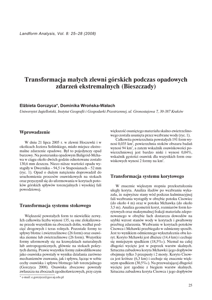 Transformacja małych zlewni górskich podczas opadowych zdarzeń