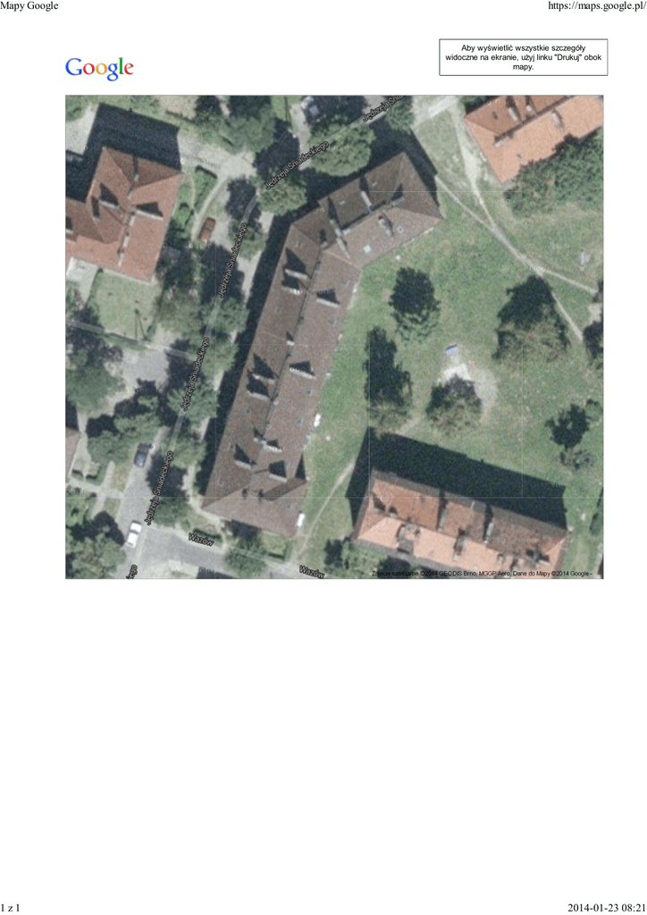 Mapy Google 1z1 https://maps.google.pl/ Aby wyświetlić wszystkie szczegóły widoczne na ekranie, uŜyj linku "Drukuj" obok mapy. 2014-01-23 08:21