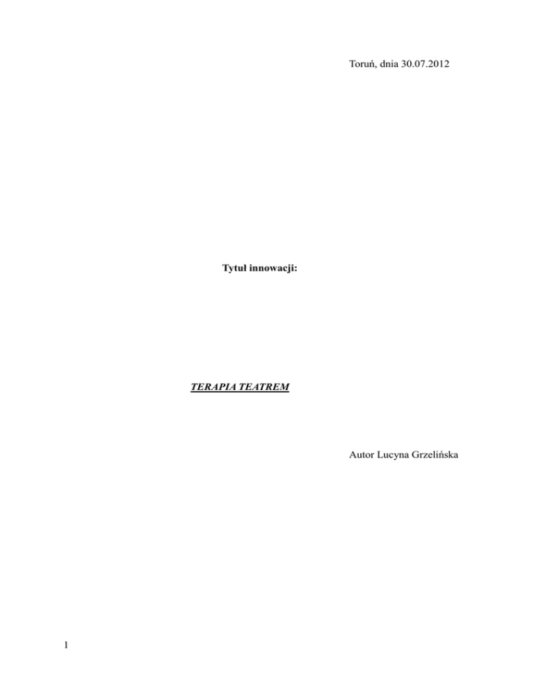 1 Toruń, dnia 30.07.2012 Tytuł innowacji: TERAPIA TEATREM Autor