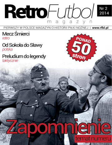 RetroFutbol Nr 2 2014 m a g a z y n pierwszy w polsce magazyn o historii piłki nożnej | www.rfbl.pl Mecz Śmierci retro Od Sokoła do Sławy polska Preludium do legendy taktycznie 50 PONA D stron P rzed Wami kolejny, drugi numer miesięcznika Retro Futbol. Dzięki niezwykle ciepłemu przyjęciu październikowego wydania, jesteśmy jeszcze bardziej zmotywowani do pisania, co zdecydowanie przekłada się na poziom magazynu. Zapomnienie temat numeru str 18 Najstarszy niemiecki klub retro str 4 Śmierć na Superga retro str 9 Retro Finale retro finale str 12 Od małej kaczki DO PIĘKNEGO ŁABĘDZIA RetroFutbol magazyn | str 2 biografia str 51 Skład naszej redakcji został powiększony o wiele ciekawych nazwisk dla których piłka nożna to nie tylko pasja, lecz także sposób na życie. Więcej o nich, a także o „starych” członkach redakcji, przeczytacie w krótkiej charakterystyce, która znajduje się pod tekstem. Znajdziecie tam również odnośniki do naszych twitterów, gdzie wspólnie będziemy mogli komentować otaczającą nas rzeczywistość. Obecny numer w większości przenosi nas w okolice okresu II wojny światowej. Przeczytacie między innymi o sposobie na zapomnienie o codzienności życia obozowego w Terezinie, gdzie futbol był jednym z ważniejszych czynników. Kolejnym, ciekawym felietonem jest opowieść o bohaterskich zawodnikach Dynama Kijów, którzy przeciwstawili się niemieckiemu okupantowi w słynnym „meczu śmierci”. Poznacie też drogę reprezentacji Polski na pierwszy historyczny Mundial, który odbył się w 1938 roku. Od Sokoło do Sławy polska str 23 Oczywiście gorąco zachęcam do przeczytania wszystkich naszych tekstów, ponieważ prezentują one równy, wysoki poziom obok którego nie można przejść obojętnie. Papierowy człowiek biografia str 27 Zatem wsiadamy w nasz futbolowy wehikuł czasu i startujemy! Święta Wojna w Glasgow klasyk str 31 Mecz Śmierci retro str 38 Preludium do legendy taktycznie str 44 Damian Bednarz redaktor naczelny str 3 | RetroFutbol magazyn retro Najstarszy niemiecki klub Kiedy wielu z nas rozmyśla na temat historii piłki nożnej, a pierwszą myśl przychodzi nam angielskie podwórko i Sheffield Football Club bądź Notts County F.C. Jednak historia futbolu nie ogranicza się do jednego kręgu, tak jak miłośnik piłki nożnej nie powinien ograniczać się do jednej ligi. Wielu uważa to za populistyczne podejście, interesowanie się czymś, ze względu na coś. Jednak każda historia, każda liga ma swoje magiczne wątki, swoje podwaliny, dzięki którym zapoczątkowano niezwykły prolog sportu. Reasumując, nie wolno się ograniczać do utartych schematów. Dlatego zainteresowałem się podwalinami niemieckiej piłki, czymś, na co spoglądałem ogólnym okiem aktualnych wydarzeń. Historia niemieckiej piłki kopanej kryje swoje niuanse, długowieczność i uwiecznienie na kartach minionych wydarzeń. Od czego się zaczęło? B.F.C Germania 1888. RetroFutbol magazyn | str 4 J est to klub piłkarski mający swoją siedzibę w berlińskiej dzielnicy „Tempelhol”. Co jest warte uwagi? Jest to najstarszy, istniejący zespół piłkarski w Niemczech. Obecnie Germania występuje w berlińskiej lidze B. Jest to odpowiednikiem dziesiątego stopnia rozgrywkowego. Za oficjalną datę powstania przyjmuje się 15 kwietnia 1888 roku. Wcześniej wspominałem o wyjątkowości historii. Ten aspekt dotyczy właśnie tego klubu, który został założony przez wówczas 17-letniego Paula Jestrama i Fritza Waltera Jestrama, którzy de facto byli braćmi, oraz kilku przyjaciół. Należy również zaznaczyć, iż w tamtych ramach czasowych piłka nożna jako dyscyplina sportowa znajdywała się tak zwanej niszowej strefie zainteresowania życia społecznego u naszego zachodniego sąsiada. Mówiąc kolokwialnie uważano ten sport za zajęcie dla „biedaków” i „pospólstwa”. Piłkę nożną traktowano jako coś gorszego, na co nie warto w ogóle zwracać uwagi. Pierwsze mecze w Berlinie miały miejsce zimą 1881 i 1882 roku. Pod koniec XIX wieku nie po- wstała jeszcze struktura obiektów piłkarskich, toteż klub swoje pierwsze potyczki rozgrywał na polu, na którym później to powstał port lotniczy Berlin-Tempelhof. Teren pod budowę lotniska został wyznaczony i wybrany 8 października 1923 roku. Pamiętny 1980... W roku 1890 „Germiania” sięgnęła po pierwsze, nieoficjalne mistrzostwo Niemiec. Krótko po założeniu, bo w tym samym roku B.F.C Germiania Berlin była już członkiem BDF, czyli „Bund Deutcher Fußballspieler” (Federacja Niemieckich Piłkarzy). Pierwsze mistrzostwo, o którym mowa zdobyto w tak zwanym trybie „Pokalmodus” to jest w pucharowym systemie rozgrywek, który ograniczał się tylko do zespołów wywodzących się z Berlina. Turniej ten rozgrywany był tylko spośród miejscowych zespołów, mowa tutaj o BFC Vorwärts 1890, BFC Askania 1890, BFC Borussia 1890, BFC Concordia 1890, BFC Hellas 1890, BFC Tasmania 1890 oraz BFC Teutonia 1891. Wedle zapisów historycznych zespół obronił zdobyty tytuł str 5 | RetroFutbol magazyn w następnym roku. „BDF” był wtedy jedynym działającym związkiem, który zrzeszał piłkarzy, i który był wstanie potwierdzić obronienie trofeum. Do tej pory jednak nie znaleziono innych przesłanek za tymi zapiskami historycznymi. W niedługim czasie po tych wydarzeniach upadł BDF z dosyć prozaicznych przyczyn. W strukturach związku nie osiągnięto porozumienia w sprawie pozwolenia cudzoziemcom na udział w rozgrywkach. Kolejnym powodem był brak unormowania transferów pomiędzy klubami. Na zgliszczach Związki Niemieckich Piłkarzy w 1891 roku powstał twór o skrócie „DFuCB”, czyli Niemiecki Związek Piłki Nożnej i Krykieta. Większość zespołów z dawnego związku dołączyło do nowych rozgrywek, kilka z nich postanowiło w ramach protestu odmówić udziału. W tym momencie Germanię spotkało wiele nieprzyjemności. Klub ki
