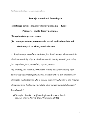 Intuicja w naukach formalnych (1) Istnieją pewne zmysłowe formy