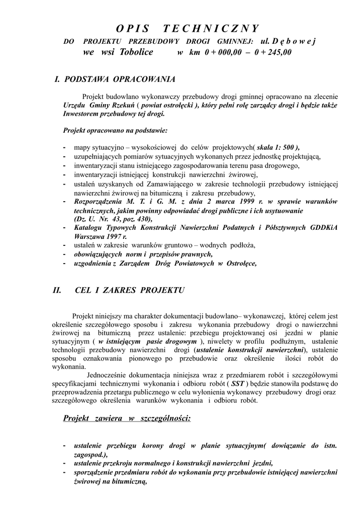 OPIS TECHNICZNY DO PROJEKTU PRZEBUDOWY DROGI