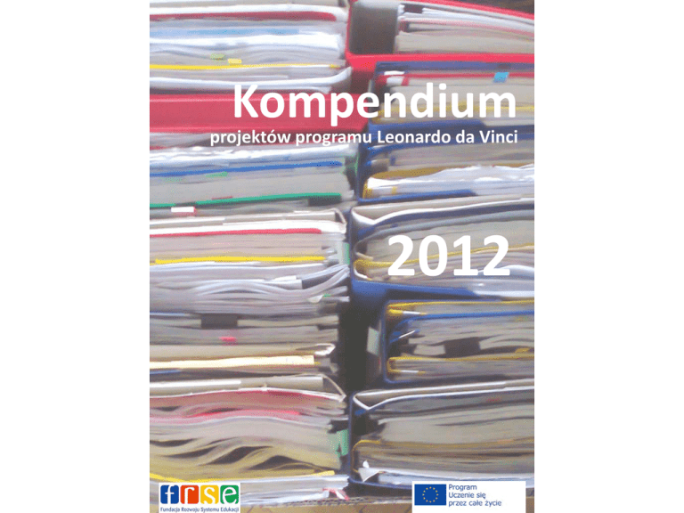 Kompendium projektów programu Leonardo da Vinci 2012 Kompendium projektów programu Leonardo da Vinci 2012 Kompendium projektów programu Leonardo da Vinci 2012 Wstęp Niniejsze kompendium zawiera informacje na temat wszystkich projektów zatwierdzonych do realizacji w ramach konkursu w 2012 roku przez polską Narodową Agencję Programu Leonardo da Vinci. Zamieszczamy w nim dane na temat polskich instytucji realizujących projekty, liczby uczestników wyjeżdżających za granicę oraz przyznanego dofinansowania. Przedstawiamy także krótkie streszczenia realizowanych działań. Projekty podzielone są na trzy działy, według typów projektów realizowanych w ramach programu Leonardo da Vinci. • • • Projekty mobilności to wyjazdy zagraniczne na określony czas w celu szkolenia i zdobywania praktycznego doświadczenia zawodowego przez uczestnika projektu w organizacji partnerskiej w innym kraju. Wyróżniamy wśród nich: - staże dla uczniów (IVT), - staże dla absolwentów, pracowników i osób bezrobotnych (PLM), - wymiany doświadczeń dla osób zajmujących się szkoleniem zawodowym i zasobami ludzkimi (VETPRO). Projektu partnerskie polegają na tworzeniu międzynarodowych partnerstw różnorodnych instytucji podejmujących współpracę nad wspólnymi zagadnieniami w obszarze kształcenia i doskonalenia zawodowego. Projekty transferu innowacji to projekty współpracy wielostronnej polegające na przenoszeniu na nowy grunt innowacyjnych rozwiązań i produktów w celu podniesienia jakości kształcenia i szkolenia zawodowego. 2 Kompendium projektów programu Leonardo da Vinci 2012 Projekty mobilności IVT PLM VETPRO 3 Kompendium projektów programu Leonardo da Vinci 2012 Projekty mobilności Numer projektu: 2012-1-PL1-LEO01-26903 Tytuł projektu: Mobilny ekonomista na europejskim rynku pracy Beneficjent: Zespól Szkół Nr 10 im. Stanisława Staszica ul. Kolektorska 9/11 01-692 Warszawa Osoba kontaktowa: Anna Polewczyk e-mail: [email protected] Liczba uczestników: 20 Dofinansowanie : 67796 euro Krótkie streszczenie: Zmieniająca się rzeczywistość gospodarcza stwarza pilną potrzebę przygotowania młodych ludzi do trudnej roli uczestnika współczesnej gospodarki rynkowej. Projekt "Mobilny ekonomista na europejskim rynku pracy" polega na zorganizowaniu 4-tygodniowych praktyk zawodowych w londyńskich firmach branży ekonomicznej. Praktyki odbędą dwie dziesięcioosobowe grupy uczniów klasy trzeciej technikum ekonomicznego. Główne cele projektu to podniesienie jakości i efektywności kształcenia zawodowego, zdobycie praktycznych umiejętności zawodowych na poziomie europejskim a także zwiększenie mobilności młodych ekonomistów oraz ich nauczycieli. Program praktyk obejmuje moduły takie jak: praktyczne doskonalenie języka obcego, zapoznanie się z funkcjonowaniem firmy w otoczeniu wewnętrznym i zewnętrznym, dokumentacja handlowa, polityka kadrowa, rachunkowość i działalność marketingowa firmy w warunkach gospodarki rynkowej. Londyn to wymarzone miejsce na praktyki zawodowe dla ekonomistów, zajmuje szczególne miejsce na mapie gospodarczej Wielkiej Brytanii, jest istotnym centrum usług finansowych i handlowych w kraju i w całej Europie. Udział w projekcie jest szansą dla młodzieży na poznanie uwarunkowań gospodarczych krajów partnerskich, a także na kształcenie samodzielności i umiejętności radzenia sobie w nowym otoczeniu. Uczestnicy projektu uzyskają Certyfikat od ADC College oraz dokument Europass Mobilność w języku polskim i angielskim, który otwiera możliwości znalezienia satysfakcjonującej pracy w zawodzie ekonomisty nie tylko w Polsce, ale również na europejskim rynku pracy. Każdy z uczestników projektu stworzy indywidualne portfolio kariery, w języku angielskim, z opisem własnych umiejetności i kompetencji zawodowych zdobytych podczas stażu. 4 Kompendium projektów programu Leonardo da Vinci 2012 Projekty mobilności Numer projektu: 2012-1-PL1-LEO01-26931 Tytuł projektu: Europejska architektura krajobrazu wczoraj i dziś - projektowanie i wykonywanie ogrodów historycznych i współczesnych Beneficjent: Zespół Szkół Budowlanych w Opolu Niemodlińska 40 45-761 Opole Osoba kontaktowa: Anna Stasz e-mail: [email protected] Liczba uczestników: 20 Dofinansowanie : 41638 euro Krótkie streszczenie: W ramach projektu zostanie zorganizowana 3 tygodniowa praktyka zawodowa dla 20 uczniów kształcących się w zawodzie technik architektury krajobrazu. Uczniowie wezmą udział w praktyce zawodowej zorganizowanej przez nowoczesny i doskonale wyposażony Ośrodek Szkolenia we Frankfurcie nad Odrą Zakładu Promowania Kształcenia Zawodowego z siedzibą w Poczdamie. Ośrodek, w którym uczniowie będą odbywać praktykę zajmuje się kształceniem zawodowym w branży budowlanej, w tym architekturze krajobrazu. Dysponuje najnowocześniejszymi maszynami, urządzeniami, programami i stanowiskami roboczymi do nauki zawodu. Organizacja stażu spowodowana jest potrzebą zwiększenia kompetencji zawodowych przyszłych architektów krajobrazu, ze względu na dynamicznie rozwijający się rynek pracy w tej dziedzinie. Projekt umożliwi uczestnikom poszerzenie wiedzy i umiejętności z zakresu projektowania i wykonywania współczesnych i historycznych ogrodów oraz projektowania dróg z betonu i naturalnego kamienia brukowego w historycznej i nowoczesnej architekturze krajobrazu. Oprócz tego zapoznają się z nowymi urządzeniami technicznymi stosowanymi w architekturze. Będą ćwiczyć umiejętności praktyczne związane z projektowaniem i zakładaniem ogrodów historycznych i współczesnych, doborem roślinności dokonywaniem pomiarów sprzętem mierniczym, zakładaniem dróg i ścieżek w ogrodach i parkach, wiązaniem kostki brukowej, projektowaniem miejsc z wykorzystaniem bruku dekoracyjnego. Poprzez wykonywanie zadań praktycznych nauczą się oprócz rozwiązań typowych szukać rozwiązań dla pojawiających się prob