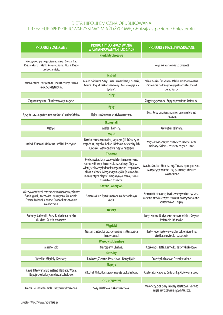 DIETA HIPOLIPEMICZNA OPUBLIKOWANA PRZEZ EUROPEJSKIE