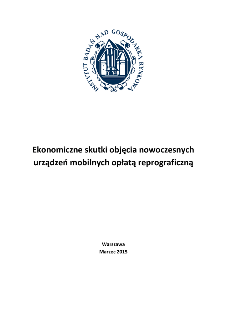 Ekonomiczne skutki objęcia nowoczesnych urządzeń mobilnych opłatą reprograficzną Warszawa Marzec 2015 Spis treści Wstęp ......................................................................................................................................... 3 1. Przepisy dotyczące opłaty reprograficznej w Polsce .......................................................... 4 1.1. Stan obecny ..................................................................................................................... 4 1.2. Propozycja OZZ ................................................................................................................ 5 2. Efekty ekonomiczne objęcia opłatą reprograficzną smartfonów i tabletów...................... 8 2.1. Tendencje na rynku smartfonów i tabletów w Polsce .................................................... 8 2.2. Symulacja wzrostu cen .................................................................................................. 10 2.3. Ekonomiczne skutki wzrostu cen ................................................................................... 13 Podsumowanie ......................................................................................................................... 17 2 Wstęp Przedmiotem niniejszego raportu jest analiza skutków ekonomicznych ewentualnej zmiany Rozporządzenia Ministra Kultury z dnia 2 czerwca 2003 roku w sprawie określenia kategorii urządzeń i nośników służących do utrwalania utworów oraz opłat od urządzeń i nośników z tytułu ich sprzedaży przez producentów i importerów w formie zaproponowanej przez organizacje zbiorowego zarządzania prawami autorskimi lub prawami pokrewnymi (OZZ) 17 marca 2014 roku. Analiza dotyczy wpływu zmiany Rozporządzenia jedynie na rynek tabletów i smartfonów. Zakres analizy dotyczy wyłącznie aspektów ekonomicznych proponowanych zmian, takich jak wpływ na poziom cen, poziom sprzedaży, konkurencyjność na rynkach zagranicznych itp. Przedmiotem analizy nie jest więc rozstrzyganie, czy tablety i smartfony są urządzeniami, czy też nośnikami służącymi do zwielokrotniania utworów i tym samym, czy z tego powodu powinny one zostać objęte opłatą reprograficzną, a także jakiej wielkości powinna być ta opłata. Zadaniem raportu nie jest też ocena zgodności proponowanych zmian z polskim prawem, w tym także z Konstytucją RP. Niemniej jednak w niniejszym raporcie zostały przytoczone ekspertyzy prawne i techniczne, dotyczące tych zagadnień, sporządzone przez osoby i instytucje kompetentne w tym zakresie. Raport został opracowany na zlecenie Związku Importerów i Producentów Sprzętu Elektrycznego i Elektronicznego Branży RTV i IT. 3 1. Przepisy dotyczące opłaty reprograficznej w Polsce 1.1. Stan obecny Najważniejszym aktem dotyczącym zarządzania prawami autorskimi w Polsce jest Ustawa z dnia 4 lutego 1994 r. o prawie autorskim i prawach pokrewnych (Prawo autorskie). Zgodnie z art. 20 ust. 1 producenci i importerzy niektórych urządzeń i nośników służących do utrwalania utworów są zobowiązani do uiszczania organizacjom zbiorowego zarządzania (OZZ), działającym na rzecz twórców, artystów wykonawców, producentów fonogramów i wideogramów oraz wydawców, opłat w wysokości nieprzekraczającej 3 procent kwoty należnej z tytułu sprzedaży tych urządzeń i nośników. W założeniu opłata reprograficzna ma stanowić „godziwą rekompensatę” dla twórców, którzy ponoszą stratę w wyniku dozwolonego prawem kopiowania utworów na własny użytek (nie do celów handlowych) przez użytkowników indywidualnych. Obowiązek stosowania takiej rekompensaty w państwach Unii Europejskiej wprowadziła Dyrektywa 2001/29/WE z dnia 22 maja 2001 r. w sprawie harmonizacji niektórych aspektów praw autorskich i pokrewnych w społeczeństwie informacyjnym. Listę urządzeń i nośników, od których pobiera się opłaty, wraz z wysokością stawek określa Rozporządzenie Ministra Kultury z dnia 2 czerwca 2003 roku w sprawie określenia kategorii urządzeń i nośników służących do utrwalania utworów oraz opłat od urządzeń i nośników z tytułu ich sprzedaży przez producentów i importerów. Zgodnie z Prawem autorskim Minister ustalając taką listę i określając wysokość opłat, powinien kierować się zdolnością urządzeń i nośników do zwielokrotniania utworów, jak również ich przeznaczeniem do wykonywania innych funkcji niż zwielokrotnianie utworów. Zgodnie z obowiązującym Rozporządzeniem opłacie podlegają: magnetofony i inne podobne urządzenia oraz związane z nimi czyste nośniki (np. wieże audio, radiomagnetofony, odtwarzacze cd z funkcją nagrywania, odtwarzacze mp3, twarde dyski, nagrywarki, karty pamięci, płyty cd itp.), magnetowidy i inne podobne urządzenia oraz związane z nimi czyste nośniki (np. odtwarzacze kaset wideo z funkcją nagrywania, odtwarzacze dvd z funkcją nagrywania, płyty dvd itp.), kserokopiarki, skanery i inne podobne urządzenia reprograficzne związane z nimi czyste nośniki (papier kserograficzny). Rozporządzenie reguluje wysokość opłaty reprograficznej, jaką należy pobrać od ceny sprzedaży urządzenia lub nośnika przez producenta lub importera. W zależności od jego rodzaju waha się ona od 1 do 3 procent. 4 1.2. Propozycja OZZ Zgodnie z art. 20 ust. 5 Prawa autorskiego Minister właściwy do spraw kultury i ochrony dziedzictwa narodowego określa kategorie urządzeń i nośników oraz wysokość opłat reprograficznych po zasięgnięciu opinii: organizacji zbiorowego zarządzania prawami autorskimi lub prawami pokrewnymi, stowarzyszeń twórców, artystów wykonawców, organizacji producentów fonogramów, producentów wideogramów oraz wydawców, organizacji producentów lub importerów urządzeń i czystych nośników wymienionych w Rozporządzeniu. 17 marca 2014 roku OZZ1, mając na uwadze między innymi stale dokonujący się postęp t