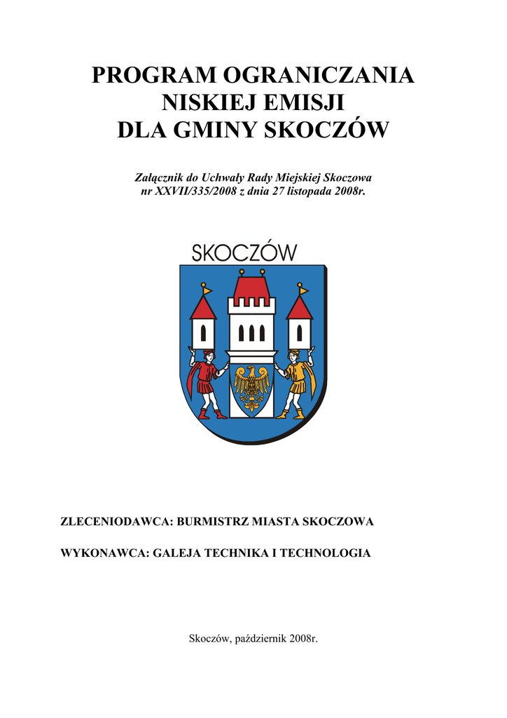 PROGRAM OGRANICZANIA NISKIEJ EMISJI DLA GMINY SKOCZÓW