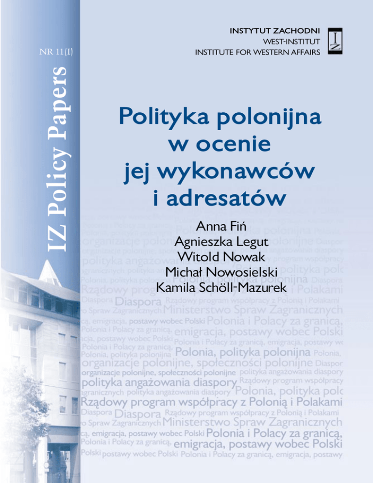 IZ Policy Papers NR 11(I) INSTYTUT ZACHODNI WEST-INSTITUT INSTITUTE FOR WESTERN AFFAIRS Polityka polonijna w ocenie jej wykonawców i adresatów Anna Fiń Agnieszka Legut Witold Nowak Michał Nowosielski Kamila Schöll-Mazurek IZ Policy Papers W serii ukazały się: Nr 1(I) Historia i pamięć: masowe przesiedlenia 1939-1945-1949 Nr 2 (I) Odradzanie się społeczeństwa obywatelskiego. Rozwój polskiego trzeciego sektora w latach 1989-2008 Nr 3(I) Międzynarodowa solidarność. Operacje pokojowe ONZ -NATO -UE Nr 4 (I) Polska i Niemcy w Unii Europejskiej (2004-2009). Główne problemy i wyzwania Nr 5(I) Przyszłość NATO – trudne decyzje Nr 6(I) Mocarstwowe aspiracje Niemiec w Europie XXI wieku: realia i perspektywy (Raport z badań) Nr 7(I) Stany Zjednoczone wobec kryzysów regionalnych – aspekt transatlantycki Nr 8(I) Dynamika niemieckiej opinii publicznej. Wizerunek Polski i Polaków w Niemczech Nr 9 (I) Dynamika niemieckiej opinii publicznej. Pozycja partii politycznych na podstawie sondaży i wyników wyborów do parlamentów krajowych (2011-2012) Nr 10 (I) Europa w strategii Baracka Obamy (2009-2012) Polityka polonijna w ocenie jej wykonawców i adresatów Anna Fiń Agnieszka Legut Witold Nowak Michał Nowosielski Kamila Schöll-Mazurek INSTYTUT ZACHODNI Seria wydawnicza: Redakcja serii: Opracowanie redakcyjne: Koncepcja graficzna: „IZ Policy Papers” nr 11(I) Joanna Dobrowolska-Polak (red. naczelna) Marta Götz Marcin Tujdowski Hanna Różanek Ewa Wąsowska © Copyright by Instytut Zachodni Poznań 2013 (wersja elektroniczna) Poznań 2013 (wersja drukowana) Wydawca: INSTYTUT ZACHODNI 61-854 Poznań, ul. Mostowa 27 tel. 61 852 76 91, 61 852 28 54 (wydawnictwo) fax 61 852 49 05 e-mail: [email protected], www.iz.poznan.pl ISBN 978-83-61736-46-2 Ekspertyza „Postawy Polonii wobec polityki polonijnej” jest dostępna na licencji Creative Commons Uznanie autorstwa 3.0 Polska. Pewne prawa zostały zastrzeżone na rzecz Autorów i Instytutu Zachodniego w Poznaniu. Utwór powstał w ramach „Planu współpracy z Polonią i Polakami za granicą w 2013 r.” realizowanego za pośrednictwem MSZ w 2013 r. Zezwala się na dowolne wykorzystanie utworu, pod warunkiem zachowania ww. informacji, w tym informacji o stosowanej licencji, o posiadaczach praw oraz o „Planie współpracy z Polonią i Polakami za granicą w 2013 r.” Konsultacja merytoryczna: Dr hab. Maciej Duszczyk Dr Michał P. Garapich Dr Elżbieta Goździak Prof. dr hab. Marek Okólski Projekt jest współfinansowany ze środków finansowych otrzymanych z Ministerstwa Spraw Zagranicznych w ramach konkursu na realizację zadania „Współpraca z Polonią i Polakami za granicą w 2013 r.” Spis treści 1. Wprowadzenie............................................................................... 7 1. 1. Przedmiot badań.......................................................................... 7 1.2. Przemiany polityki polonijnej po 1989 r. ....................................... 9 1.3. Założenia projektu ..................................................................... 14 ANALIZA .......................................................................................16 2.Polityka wobec diaspory w teorii i praktyce.......................................... 16 2.1. Polityka wobec diaspory w krajach rozwijających się.................... 18 2.1.1. Założenia polityki wobec diaspory w krajach rozwijających się.................................................................... 19 2.1.2. Budowanie zdolności symbolicznej......................................... 21 2.1.3. Budowanie zdolności instytucjonalnej....................................22 2.1.4. Prawa..................................................................................... 23 2.1.5. Zobowiązania........................................................................ 24 2.2. Polityka wobec diaspory w krajach wysoko rozwiniętych.............. 27 2.2.1. Założenia polityki wobec diaspory w krajach wysoko rozwiniętych.......................................................................... 28 2.2.2. Budowanie zdolności symbolicznej......................................... 29 2.2.3. Budowanie zdolności instytucjonalnej....................................30 2.2.4. Prawa..................................................................................... 31 2.2.5. Zobowiązania........................................................................ 32 3. Postawy przedstawicieli polskich instytucji wobec założeń i realizacji polityki polonijnej. Wyniki badania jakościowego....... 35 3.1. Dotychczasowa realizacja polityki polonijnej i model jej koordynacji ............................................................... 36 3. 2. Zmiana polityki polonijnej ........................................................ 39 3. 3. Krytyka, zagrożenia i obawy........................................................ 40 4. Polacy mieszkający za granicą wobec kwestii związanych z polityką polonijną. Wyniki sondażu ...................................... 43 4.1. Charakterystyka prac badawczych............................................... 45 4.2. Partycypacja społeczna i jej obszary ............................................ 47 4.2.1. Kontakty społeczne . .............................................................. 48 4.2.2. Partycypacja polityczna.......................................................... 49 4.2.3. Uczestnictwo w kulturze........................................................ 50 4.2.4. Partycypacja organizacyjna..................................................... 52 4.3. Gotowość do zaangażowania się w realizację polityki polonijnej................................................................................... 53 4.3.1.Ocena polityki polonijnej ....................................................... 53 4.3.2. Ocena funkcjonowania instytucji polskich i organizacji polonijnych...................................................