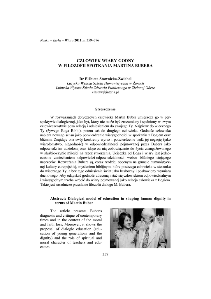 człowiek wiary-godny w filozofii spotkania martina bubera