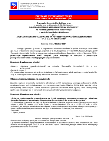 zapytanie i wyjaśnienie treści SP - Tramwaje Szczecińskie Sp. z oo