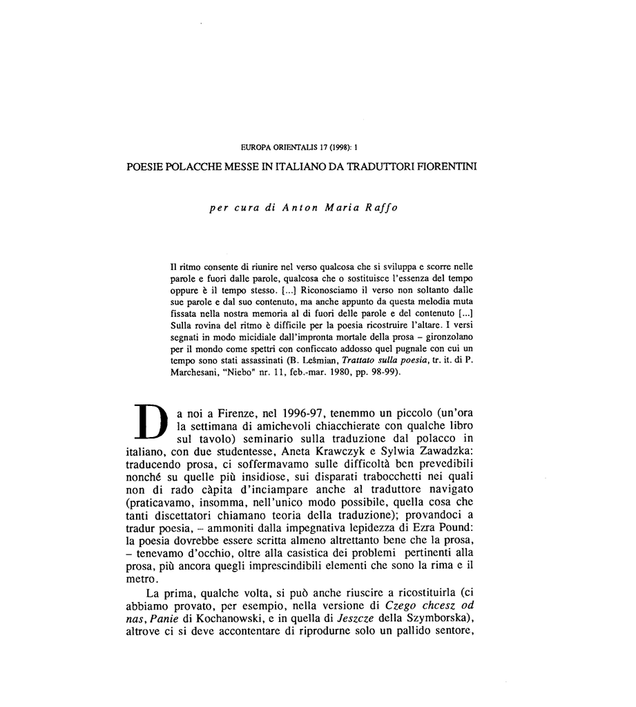 POESIE POLACCHE MESSE IN ITALIANO DA TRADUTTORI FIORENTINI