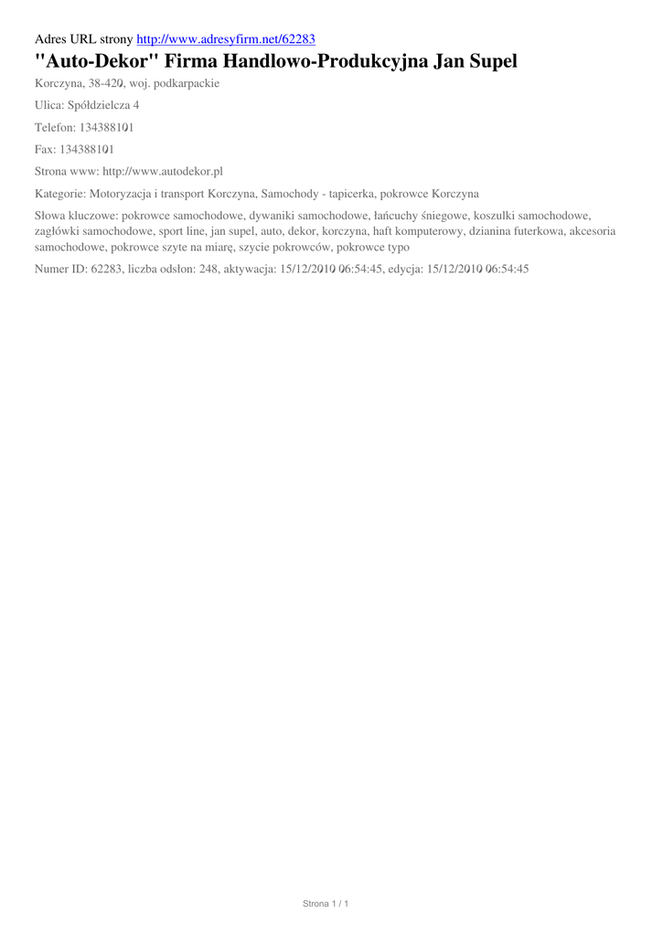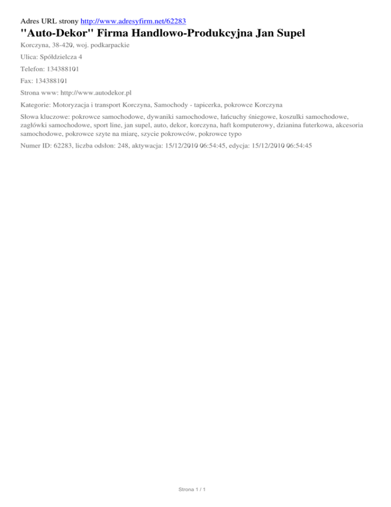 "Auto-Dekor" Firma Handlowo-Produkcyjna Jan Supel