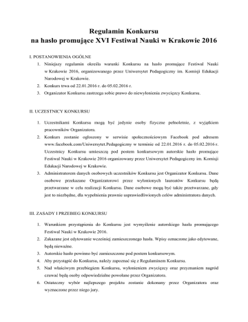 Regulamin Konkursu na hasło promujące XVI Festiwal Nauki