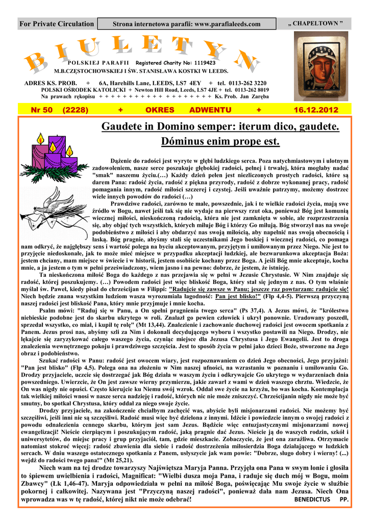 For Private Circulation Strona internetowa parafii: www.parafialeeds.co.uk