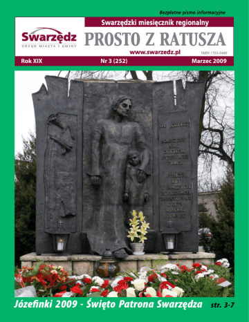 Rok XIX Nr 3 (252) Marzec 2009 Józefinki 2009 - Święto Patrona Swarzędza str. 3-7 R E K L A M A Koniec z wymówkami Nie mam gdzie ćwiczyć… W Swarzędzu nie ma profesjonalnej bazy… Koniec z takimi wymówkami! Jest. Na naszych oczach w ciągu kilku miesięcy rosła STREFA SPORTU na os. Raczyńskiego. Teraz mamy wreszcie nowoczesny klub dla aktywnych ludzi. Posiada dwa kryte korty tenisowe ze sztuczną nawierzchnią, profesjonalnie wyposażoną salę do zajęć fitness, dobrze nagłośnioną salę do zajęć indoor cycling, dwie sauny fińskie, kameralne szatnie, hot spot, sklep sportowy oraz wyspę kawową. Komfort, poczucie bezpieczeństwa, satysfakcja oraz możliwość wyboru! Na ponad 400 m. kw., nie licząc kortów. Od 7 rano do 23 wieczorem. Teraz jeśli chcesz się po prostu lenić zamiast zainwestować w zdrowy i atrak- cyjny wygląd, musisz sobie znaleźć inną wymówkę… W STREFIE SPORTU można skorzystać z różnorodnych zajęć fitness: od klasycznego ABT, poprzez zajęcia „płaski brzuch” i „zdrowy kręgosłup” po pilates i jogę. Do tego gorące rytmy salsy… Właściciele klubu stawiają na popularyzację sportu jako metody poprawy samopoczucia i redukcję stresu. Dlatego zapraszają do współpracy także klientów korporacyjnych. Z klubem związane jest Stowarzyszenie Sportowe Strefa Sportu Tenis & Fitness, które stawia sobie jako jeden z głównych celów popularyzację tenisa wśród dzieci i młodzieży. Tu, na dwu ogrzewanych kortach, odbywają się zajęcia Szkoły i Przedszkola Tenisowego – już pięciolatki mogą zapoznać się z tym przyjemnym sportem pod baczną pieczą doświadczonych instruktorów! Klub zapewnia nie tylko profesjonalną kadrę, ale także sprzęt (rakiety, piłki). W czasie zajęć organizowanych dla dzieci rodzice mogą w przyjemnym otoczeniu napić się kawy, albo skorzystać z innych zajęć czy sauny. STREFA SPORTU oficjalnie otwarta zostanie w kwietniu, choć już dziś można korzystać z niektórych zajęć – np. z kortów tenisowych. Wreszcie Swarzędz doczekał się w pełni profesjonalnego klubu, w którym znajdzie się miejsce dla rozwoju aktywności całej rodziny. Mamy w naszym mieście m.in. basen, boisko i STREFĘ SPORTU. Koniec z wymówkami! otwarcie w kwietniu zapisz siÚ juĝ dziĂ! 03_Strefa_Fitnes_185x129.indd 1 z a m ó w r e k l a m ę : m n @ k r e a t o r. c o m . p l , k o m3/16/09 . 0 6 0 79:29:55 5 6 6 5AM 55 Aktualności Prosto z Ratusza JÓZEFINKI 2009 - Święto Patrona Miasta Tegoroczne uroczystości Święta Patrona Miasta obchodziliśmy inaczej niż w poprzednich latach. Swarzędzki samorząd zaproponował mieszkańcom naszej gminy zupełnie nową, bardzo atrakcyjną formę świętowania, co było odpowiedzią na zgłaszane powszechnie opinie i propozycje. Uroczysta sesja Rady Miejskiej Rozpoczęliśmy jednak tradycyjnie 19 marca złożeniem kwiatów pod pomnikiem Św. Józefa przy Pawilonie Meblowym Cechu Stolarzy Swarzędzkich, a następnie Uroczystą Sesją Rady Miejskiej. Aula Zespołu Szkół nr 1 im. Powstańców Wielkopolskich na os. Mielżyńskiego – gospodarza uroczystej sesji – zgromadziła liczne grono zaproszonych gości. Przybyli m.in.: wicestarosta Poznański Tomasz Łubiński, wiceprzewodniczący Rady Miasta Poznania Przemysław Foligowski, prezes Izby Rzemieślniczej w Poznaniu Antoni Odzimek, burmistrz Kostrzyna Paweł Iwański, radni Rady Powiatu, Rady Miejskiej Swarzędza i wybranej niedawno Młodzieżowej Rady Miejskiej, przedstawiciele organizacji pozarządowych, przedsiębiorcy, w tym reprezentanci środowiska stolarzy, duchowni. Przewodniczący Rady Miejskiej Piotr Choryński przypomniał zebranym historię Święta Patrona Swarzędza i samą postać Świętego Józefa. Mówiąc o historii Swarzędza Piotr Choryński podkreślał wątek wielokulturowości naszego miasta, w którym od zarania stapiały się wpływy czterech kultur i narodowości – Pola- Marzec 2009 ków, Żydów, Niemców i Romów. Następnie głos zabrała burmistrz Anna Tomicka, która podsumowała dokonania swarzędzkiego samorządu w minionym roku i przedstawiła plany na przyszłość. (wystąpienie burmistrz Anny Tomickiej drukujemy na str. 5). Bożena Szydłowska, Krystyna Łybacka, Marek Zieliński i Stanisław Kalemba. Poinformował również, iż zaproszeni posłowie nie mogli uczestniczyć w uroczystościach ze względu na pracę w Sejmie. Cechmistrz Cechu Stolarzy Swarzędzkich Bogdan Nowacki akcentował dobrą współpracą pomiędzy samorządem Swarzędza a środowiskiem stolarskim. Ciepłe słowa skierował pod adresem pracowników referatu promocji i rozwoju UMiG. Mówił także o obawach, jakie są udziałem stolarzy w związku z panującą na rynku recesją. Przewodniczący Rady poinformował, że listy gratulacyjne przesłali posłowie na Sejm RP: Pierwszy głos zabrał wiceprzewodniczący Rady Miasta Poznania Przemysław Foligowski, który wręczył list gratulacyj- ny Burmistrzowi Miasta i Gminy Swarzędz Annie Tomickiej. Następnie przemawiał wicestarosta Powiatu Poznańskiego Tomasz Łubiński, który wręczył list gratulacyjny wraz z wiązanką kwiatów burmistrz Tomickiej oraz przewodniczącemu Choryńskiemu. Głos zabrał również burmistrz Kostrzyna Paweł Iwański, który wręczył list gratulacyjny . Bardzo ważnym punktem uroczystej sesji było, przyjęte gromkimi oklaskami, wręczenie odznaczeń „Zasłużony dla Miasta i Gminy Swarzędz”. To zaszczytne wyróżnienie otrzymali: Barbara Antoniewicz, Henryk Brodziszewski i Tadeusz Krug. (na stronach 6-7 przedstawiamy sylwetki uhonorowanych) Odbywająca się w imieni- Prosto z Ratusza ny Św. Józefa uroczysta sesja była okazją do tego, aby Cechmistrz Bogdan Nowacki wraz Antonim Odzimkiem wyróżnili odznaczeniem Związku Rzemiosła Polskiego następujących swarzędzkich rzemieślników: Stanisława Zarembę, Jerzego Grzeczkę, Dariusza Soszyńskiego i Marka Drynkowskiego. Sympatycznym akcentem uroczystoś