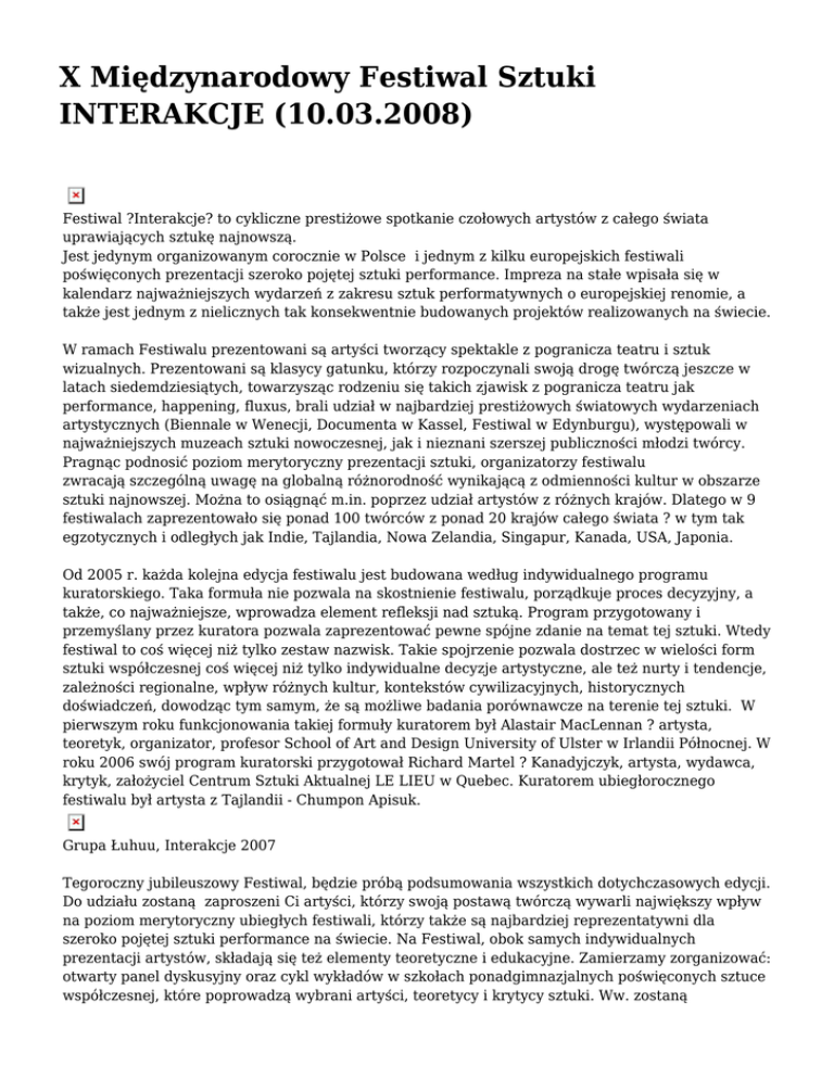 X Międzynarodowy Festiwal Sztuki INTERAKCJE (10.03.2008)