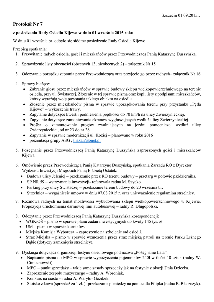 Protokół Nr 7 - rada osiedla kijewo