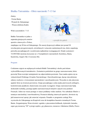 Białka Tatrzańska - Obóz narciarski 7-13 lat