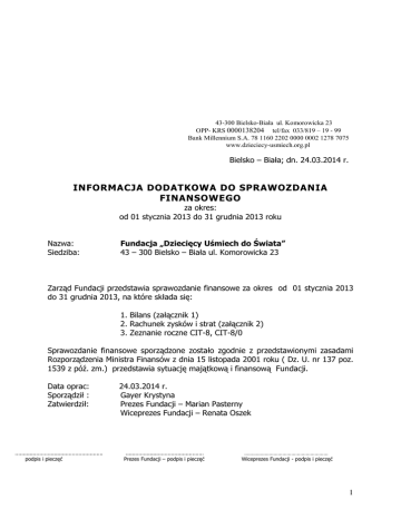 Informacja dodatkowa 2013 r. - Fundacja Dziecięcy Uśmiech do