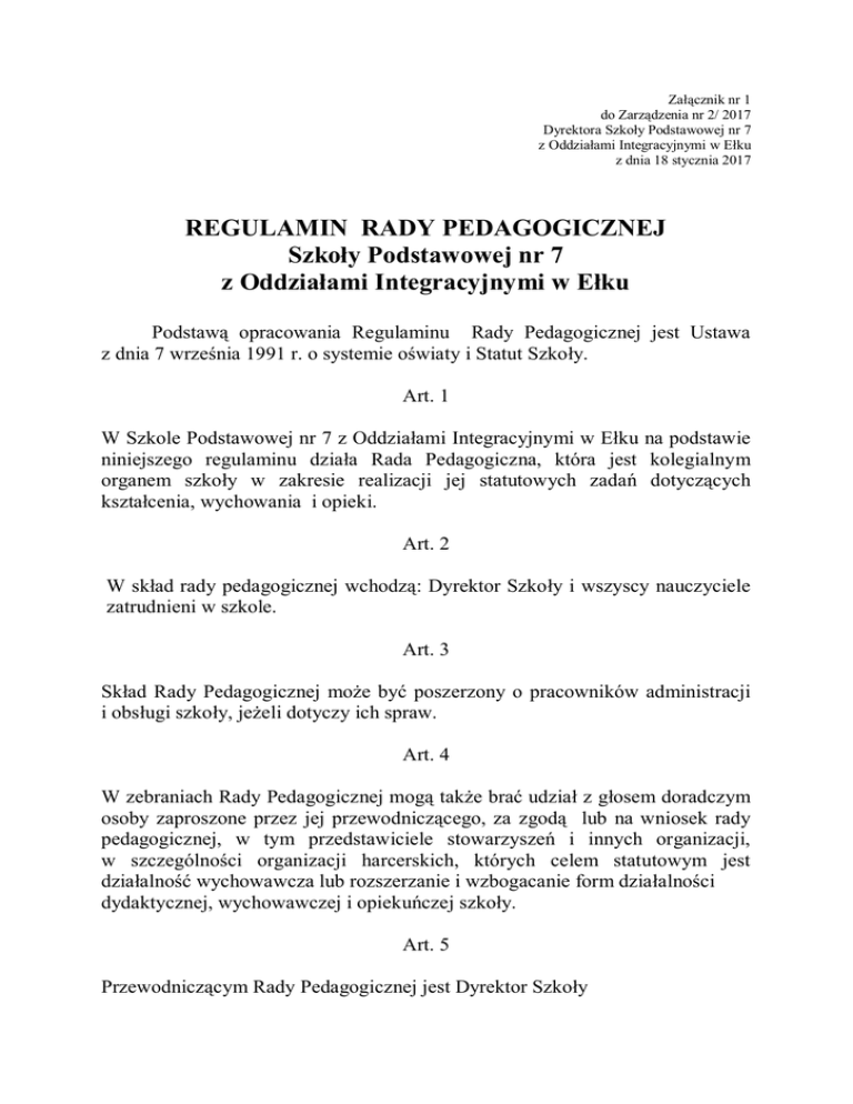 Regulamin Rady Pedagogicznej - Szkoła Podstawowa nr 7 w Ełku