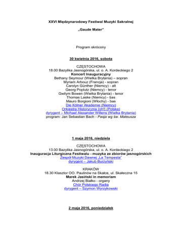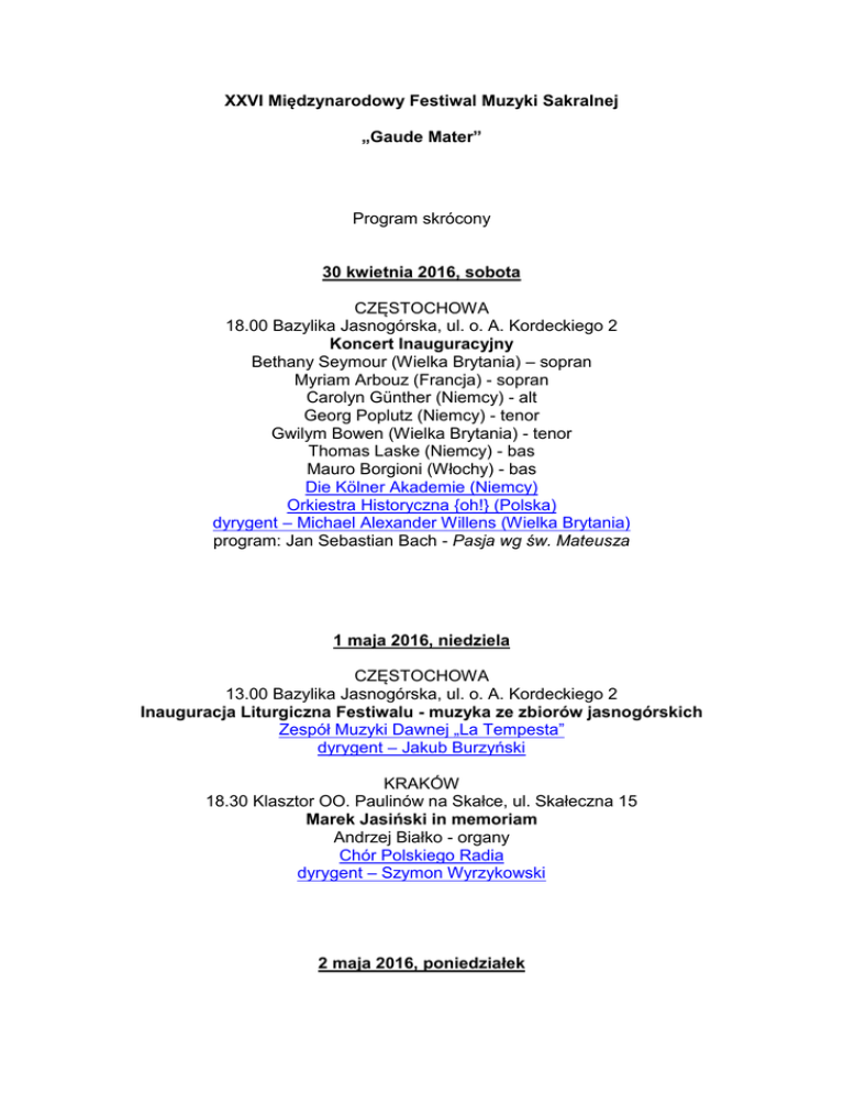 XXVI Międzynarodowy Festiwal Muzyki Sakralnej