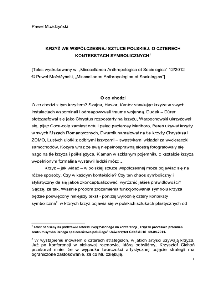 Paweł Możdżyński KRZYŻ WE WSPÓŁCZESNEJ SZTUCE
