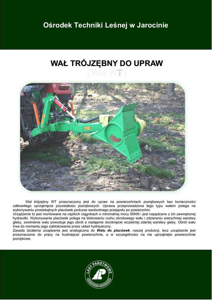 wał trójzębny do upraw - Ośrodek Techniki Leśnej w Jarocinie
