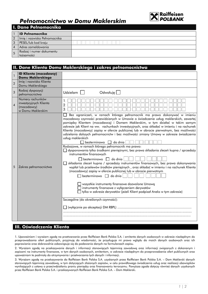 Druk pełnomocnictwa - Raiffeisen Brokers