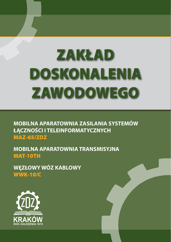 ZAKŁAD DOSKONALENIA ZAWODOWEGO MOBILNA APARATOWNIA ZASILANIA SYSTEMÓW ŁĄCZNOŚCI I TELEINFORMATYCZNYCH MAZ-65/ZDZ MOBILNA APARATOWNIA TRANSMISYJNA MAT-10TH WĘZŁOWY WÓZ KABLOWY WWK-10/C ZAKŁAD DOSKONALENIA ZAWODOWEGO www.zdz.krakow.pl Mobilna aparatownia transmisyjna MAT-10 CT z transmisją troposferyczną Mobilna Aparatownia Zasilania MAZ-65/ZDZ na samochodzie Mercedes Zetros 6x6. ul. Wybickiego 3A, 31-261 Kraków, tel. (+48 12) 634 58 55, 634 54 16 2 2 MOBILNA APARATOWNIA ZASILANIA SYSTEMÓW ŁĄCZNOŚCI I TELEINFORMATYCZNYCH MAZ-65/ZDZ POTRZEBUJE JEDYNIE PALIWA, ZA KTÓRE DAJE ENERGIĘ ELEKTRYCZNĄ 65 kVA W DOWOLNYM MIEJSCU Uwzględniając wymagania dla mobilnych systemów zasilania, a przede wszystkim nowe technologie i niezawodność oraz pewność dostaw energii elektrycznej na współczesnym polu walki, wykonano Mobilną Aparatownię Zasilania MAZ – 65/ZDZ. Aparatownia ta spełnia wymagania norm krajowych i międzynarodowych oraz NATO w zakresie wytwarzania, dystrybucji energii elektrycznej i budowy polowych sieci zasilających oraz współpracy ze stacjonarnym systemem energetycznym niskiego napięcia. Aparatownia przeznaczona jest do: zasilania napięciem zmiennym zarówno odbiorników trójfazowych jak i jednofazowych, ze szczególnym uwzględnieniem aparatowni teleinformatycznych oraz sieci LAN polowego systemu łączności budowy polowego systemu energetycznego o ogólnej mocy 65 kVA współpracy ze stacjonarnym systemem energetycznym o napięciu znamionowym 3x400V budowy systemu energetycznego w układzie samoczynnego załączania rezerwy 3 Aparatownia umożliwia: rozwinięcie systemu zasilania dla aparatowni łączności oraz sieci transmisji danych w promieniu 250m oraz innych urządzeń o sumarycznej mocy nie większej niż 65 kVA zapewnienie awaryjnego systemu zasilania dla systemu transmisji danych i aparatowni łączności o dopuszczalnej maksymalnej mocy 20 kVA zasilanie urządzeń łączności, transmisji danych, urządzeń technicznych wspomagających proces podejmowania decyzji itp. na stanowisku dowodzenia praca w układzie SZR – samoczynnego załączenia rezerwy zasilania możliwości zasilania technicznych urządzeń wspomagających służby ratujące w rejonie klęski żywiołowej bezprzerwowe zasilanie urządzeń techniki medycznej w przypadku awarii głównego systemu zasilania lub w rejonie klęski żywiołowej współpraca z systemem zasilania państw członków NATO aparatownia jest rozwijania w czasie mniejszym niż 30 minut od zajęcia rejonu rozwinięcia rozwinięty system zasilania jest gotowy do pracy w czasie mniejszym niż 250 minut od zajęcia rejonu rozwinięcia ZSE ZPO 65 TDEZ Nr 1 TABLICA SYNOPTYCZNA MAZ 65 UKŁAD AUTOMATYCZNEGO GASZENIA POŻARU UPS Z SYSTEMEM STEROWANIA 4 ZSE ZPO 65 TDEZ Nr 2 TABLICA GNIAZD WEJ/WYJ ZESTAWY KABLI NA BĘBNACH UBK2/ZDZ 4 TABLICA ZABEZPIECZEŃ PRZEWODY NA WYPOSAŻENIU: Kabel podłączeniowy H07RNF 750V 4x16 50mb Przedłużacz H07RNF 750V 5x6mm 50mb Przedłużacz H07RNF 750V 3x4mm 100mb Przedłużacz H07RNF 750V 5x4mm 50mb Przedłużacz H07RNF 750V 3x2,5mm 100mb Rozdzielnia 3 fazowa 520026P 230/400V 16/32A Rozdzielnia 1 fazowa 520025P 230/400V 16/32A Przedłużacz 81003P 230V/16A 10mb Lp. PARAMETR DANE ZNAMIONOWE 1. Typ MAZ 65 2. Źródło napięcia dwa agregaty typu ZPO 65 TDEZ 3. Moc znamionowa kVA/kW. 65/52 4. Moc znamionowa z przeciążeniem kVA/kW 72/57,6 5. Rodzaj napięcia zmienne trójfazowe 6. Napięcie znamionowe V 400/230 7. Częstotliwość w Hz 50 8. Prąd dla napięcia 3x400 V – praca ciągła/dorywcza w A 9. Współczynnik mocy cosf 94/104 0,8 10. Układ połączeń TNC - S 11. Regulacja napięcia automatyczna 12. Temperatura pracy OC - 30 do + 50 13. Temperatura przechowywania OC 1 szt. 4 szt. 3 szt. 3 szt. 4 szt. 3 szt. 1szt. 10 szt. -40 do + 60 5 MOBILNA APARATOWNIA TRANSMISYJNA MAT-10TH MOBILNA APARATOWNIA TRANSMISYJNA MAT-10TH MAT-10TH przeznaczona jest do zapewnienia łączności między dwoma punktami w odległości 50 - 250 km z typową szybkością transmisji 128 – 8448 kbps przy wykorzystaniu propagacji troposferycznej. Większe przepływności wymagają zastosowania wzmacniaczy końcowych o zwiększonych mocach. MAT-10TH może być również wykorzystana w sytuacjach kryzysowych ze szczególnym uwzględnieniem wystąpienia klęsk żywiołowych. Przeznaczona jest także do zapewnienia łączności między lądem a platformami wiertniczymi, stanowi alternatywę dla łączności satelitarnej dając możliwość budowy elastycznego i niezawodnego systemu o dużych przepływnościach. Ukompletowanie MAT-10TH jest uniwersalne i może być wykorzystane wszędzie tam, gdzie korzystanie z łączy satelitarnych jest utrudnione lub nieopłacalne ze względu na koszt eksploatacji. Aparatownia spełnia wymogi standardów międzynarodowych ITU-T, ITU-R oraz NATO w zakresie bezprzewodowej jak i przewodowej transmisji da-nych. Aparatownia jest rozwijana w czasie mniejszym niż 150 minut od zajęcia rejonu rozwinięcia. 6 MOŻLIWOŚCI EKSPLOATACYJNE: komutacja strumieni cyfrowych o przepływnościach (128 ÷ 8448) kbps tworzenie dalekosiężnych pozahoryzontowych linii radiowych na dystansie do 250 km z maksymalną przepływnością 8448 kb/s opcjonalna budowa szerokopasmowej, komórkowej sieci dostępowej EoIP, dzięki której stacje abonenckie uzyskują dostęp do zasobów systemu radioliniowo-przewodowego szczebla brygady, dywizji, związku operacyjnego, dowództwa rodzajów wojsk i służb oraz mogą korzystać z różnych usług multimedialnych opcjonalne tworzenie bezprzewodowej sieci LAN obiektów ruchomych bez wyznaczonej dedykowanej stacji bazowej tworzenie szerokopasmowej komórkowej sieci dostępowej o zasięgach łączności od 6 do 40 km, pracującej w trybie TDMA, zapewniającej sieć traktów ogólnego zastosowania pomiędzy stacją bazową i obiektami ruchomymi w układzie punkt-wielopunkt współpraca z systemem STORCZYK 2010, JAŚMIN oraz z innymi systemami poprzez trakt rad