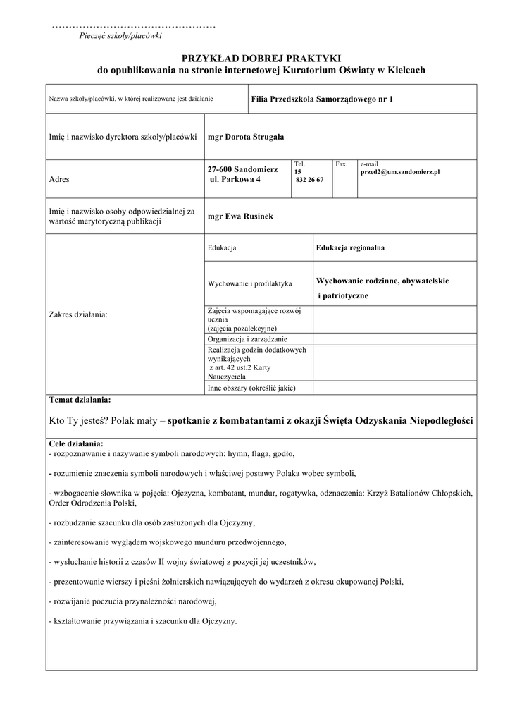 Zgłoszenie dobrej praktyki - Kuratorium Oświaty w Kielcach