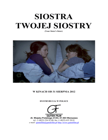SIOSTRA TWOJEJ SIOSTRY (Your Sister's Sister) W KINACH OD 31 SIERPNIA 2012 DYSTRYBUCJA W POLSCE Al. Wojska Polskiego 41/43, 01-503 Warszawa tel.: (+4822) 536 92 00, fax: (+4822) 635 20 01 e-mail: [email protected] http://www.gutekfilm.pl SIOSTRA TWOJEJ SIOSTRY YOUR SISTER'S SISTER Reżyseria i scenariusz Lynn Shelton Muzyka Vince Smith Montaż Nat Sanders Zdjęcia Benjamin Kasulke W rolach głównych: Emily Blunt Rosemarie DeWitt Mark Duplass Iris Hannah Jack Producenci Steven Schardt Megan Griffiths Mel Eslyn Produkcja Ada Films USA rok produkcji: 2011 czas trwania: 90 min. 35 mm – Dolby Digital Kolor Emily Blunt („Diabeł ubiera się u Prady”) w niezależnej komedii pełnej pomyłek i nieporozumień, skrywanych uczuć i niewypowiedzianych pragnień. Iris i Hanna to siostry. Jack jest najlepszym przyjacielem Iris. Ta trójka niespodziewanie spędzi razem kilka dni w domku na odludziu. Kto kogo kocha? Kto coś udaje? Kto kim manipuluje? I kto z kim chce się przespać? Doskonale przyjęta na festiwalach w Sundance i w Toronto komedia Lynn Shelton, w której współcześni trzydziestolatkowie muszą pod wpływem zbiegu okoliczności zrzucić maski i zmierzyć się ze swoimi niepokojami i uczuciami. GŁOSY PRASY Perła niezależnego kina tej klasy, co „Once” i „Debiutanci”. AICN Shelton z dojrzałością i dużą pewnością siebie wkracza na terytorium Woody’ego Allena. Screen International Znakomita opowieść o relacjach, w których przekroczone zostały pewne granice i seksualnych podbojach, których efekt jest zawsze odwrotny od zamierzonego. Variety Śmieszny i błyskotliwy portret współczesnych trzydziestolatków. Ain't It Cool News Amerykańskie kino niezależne najwyższej klasy. Time Out Dynamiczne i pełne napięcia zmiany w relacjach trójki bohaterów są ekscytujące, a porozumienie między odtwarzającymi ich aktorami nieomal magiczne. Duplass, DeWitt i Blunt prezentują się tutaj w jednych z najdoskonalszych, najsubtelniejszych ze swoich ról. Grają ze sobą z tym rodzajem łatwości i zaufania, z jakimi mamy do czynienia w przypadku miłości. Entertainment Weekly Świetny przykład na to, co utalentowany reżyser potrafi osiągnąć, mając do dyspozycji doskonałych aktorów i napisaną prosto od serca historię. Ten film potwierdza, że małe przyjemności dają największą satysfakcję. The Guardian Pulsuje życiem od samego początku do końca. The Wall Street Journal Mądra komedia, a to wciąż rzadkość. The Huffington Post Wchodzi do głowy i nie daje o sobie zapomnieć. The Rolling Stone Przejmujący, mądry, świetnie napisany i zagrany. The New York Times Znakomity! Natychmiast porywa publiczność świetnymi dialogami i poczuciem humoru. New York Magazine Czarujący i inteligentny. The Oregonian Niesamowita chemia między aktorami sprawia, że „Siostra twojej siostry” staje się czymś więcej niż prostą historią miłosną. Slash Film To jeden z tych rzadkich filmów, po których czujemy się lepiej. Nie przegapcie! Film School Rejects ROZMOWA Z LYNN SHELTON Jaka jest geneza tego filmu? Co sprawiło, że chciałaś opowiedzieć tę historię? Jednym z moich głównych zainteresowań jako artystki jest to, jak postrzegamy samych siebie i co się dzieje gdy stajemy twarzą w twarz z faktem, że nasze wyobrażenie o sobie nie zawsze pokrywa się z rzeczywistością. Fascynuje mnie co robimy w tych sytuacjach, gdy bacznie wpatrujemy się w siebie i stajemy się samoświadomi. A najczęściej dzieje się tak, gdy zderzamy się z innym człowiekiem. W tym wszystkim chodzi o pojawiającą się wtedy dynamikę i o zdanie sobie sprawy, że wszyscy jesteśmy niedoskonali. Pewnego dnia usłyszałem w radio Cornela Westa mówiącego, że wszyscy jesteśmy jak popękane naczynia i pomyślałam wtedy: „Tak! I to jest piękne. Bylibyśmy tacy nudni, gdyby było inaczej!”. W przypadku tego konkretnego filmu chciałam zbadać relacje między rodzeństwem. W „Siostra twojej siostry” są takie dwie, obie bardzo silne, a w jednej z nich drugie z rodzeństwa nie żyje. Jack jest naprawdę głęboko wstrząśnięty tym, że nie był z bratem blisko, gdy ten umierał. Nie może dojść do siebie właśnie z tego powodu. Częścią tego trudnego procesu powrotu do zdrowia będzie dla niego to, że z jego powodu zbliżą się do siebie siostry. To pozwoli mu wybaczyć samemu sobie i ruszyć dalej. Tego rodzaju relacje interesowały mnie w tym filmie. W „Siostra twojej siostry”, ale też w innych twoich filmach, jest dużo humoru. Czy masz jakiś związek z amerykańską sceną komediową, czy może twoje poczucie humoru wynika z podejścia do życia? Uwielbiam się śmiać i to śmiać się głośno. Co ciekawe w studenckim teatrze uważana byłam za poważną dramatyczną aktorkę. W Nowym Jorku grałam sporo w teatrach off-off Broadwayu i nie zdawałam sobie sprawy, że mogę być zabawna, aż do czasu roli w „Codependent Lesbian Alien Seeks Same”. Madeleine Olnek reżyserowała tę sztukę i to ona odkryła we mnie aktorkę komediową. Ale w ogóle nie chodzę na występy komików stand upowych, ten świat nie jest częścią mojego. Momenty komediowe pojawiają się w „Siostrze...” zupełnie naturalnie, jako oczywiste dopełnienie tych dramatycznych. To prawda. Nie staram się za wszelką cenę, żeby było zabawnie. Staram się opowiedzieć pewną historię i humor pojawia się tu w bardzo określonym kontekście. Jest oparty na postaciach i sytuacjach, w których one się znajdują. W moich filmach nie opowiadam dowcipów. Jakiś czas temu zorientowałam się, że najzabawniejsze sytuacje powstają w te dni, gdy na planie jesteśmy najbardziej poważni. Kiedy postaci znajdują się w sytuacjach najbardziej niepokojących i intensywnych. To budzi śmiech na widowni, bo odnajduje się ona w nich. Na zasadzie: „moja żona ma taki sam wyraz twarzy, kiedy wie, że wciskam jej kit!”. Na szczęście - a jest to coś do czego dążę 