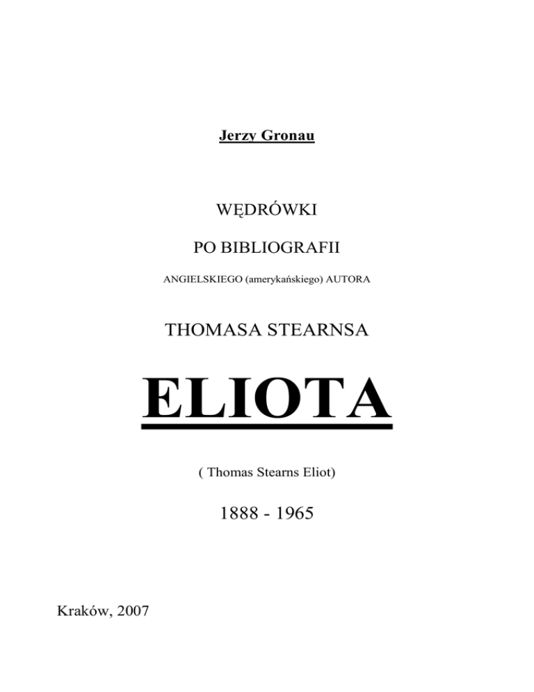 ukazywały się prace Eliota. Nie są to więc ściśle bibliografie a raczej - spisy spotkanych tytułów. Jednak w