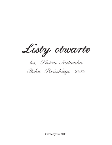 WSTĘP Ogromnym błędem współczesnego człowieka, żyjącego już prawie poza przestrzenią Boga, jest mierzenie siebie i swojego posłannictwa na ziemi, taką samą miarą, jaką mierzy on innych ludzi. Każdy człowiek i każde dzieło realizowane na ziemi mają różne aspekty 1. We współczesnym świecie zło wybuchło z gwałtownością huraganu, w swoim szale porywa ludzi, niszczy narody i rujnuje Kościół. Dla ludzi wierzących, ogromnym wsparciem jest to, że o wyniku i zakończeniu tej potwornej bitwy, nie decydują moce zła, ale sam Bóg. Bóg, któremu wszyscy są poddani, przyjaciele i nieprzyjaciele. Stąd też wszyscy ludzie, chcąc czy nie chcąc, muszą pracować dla chwały Boga i dla zapanowania Królestwa Bożego na ziemi 2. Dzisiaj tak mało ludzi wierzy, że nadejście Królestwa Bożego jest tak bliskie, jak nigdy dotąd. Dlatego tym co wierzą pozostały: odwaga, ufność, zawierzenie i otoczenie Boga jak dzieci. Ludzkości, jeśli chce się uratować pozostały trzy próby: próba wiary, próba uznania Boga za najwyższego Pana ( Intronizacja) i próba miłości 3. 1 Ottavio Michellini, ks., Orędzia Pana Jezusa Chrystusa do kapłanów, Wrocław 2002, wyd. II, s. 269. 2 Tamże, s.270. 3 Tamże, s. 276. 3 Bóg jest początkiem i pierwszą przyczyną życia na ziemi i wszelkich działań, we wszystkich sferach tego ludzkiego życia, i życia natury. Dlatego On, Bóg, zaopatruje, zachowuje i kieruje wszystkie stworzenia w dojściu do ostatecznego ich celu. Bóg jest celowością wszystkiego i wszystkich. On nie tylko opatruje, ale i przewiduje potrzeby tych, którzy mu bezwzględnie zaufali i liczą na Niego 4. Nie mając żadnych wątpliwości, że ta pseudo-cywilizacja grzechu, cywilizacja śmierci, cywilizacja nieskończonej głupoty ludzkiej, cywilizacja szatana, idzie ku wielkiemu chaosowi i katastrofie, podjąłem się napisania czterech listów otwartych do: rządzących, kapłanów, katolików świata i narodu polskiego. Słowa, które są zawarte w nich, nie tylko wynikają z mojej wiary, ale i z pewności, jakiej doznałem po analizie mowy Boga do ludzkości, w ciągu ostatnich wieków. Świat odrzucił Boga i z niesłychaną nienawiścią otacza dzisiaj Kościół Boży. Ludzie powiedzieli Bogu „nie” i zwrócili się ku fałszywym bożkom. Stąd cierpienie Boga dzisiaj jest nieprawdopodobne: … zastanów się teraz nad opuszczeniem ze strony „synów Bożych” moich braci, moich „przyjaciół”, moich sług i pasterzy, spójrz i zastanów się jak się ze Mną obchodzą w tajemnicy Miłości... 4 4 Tamże, s. 274-275. Spójrz na samotność w której mnie zostawili! Spójrz na świętokradztwa, którymi znieważają Mnie! Spójrz, ilu Mnie się zapiera! A ilu Mnie nienawidzi! MIŁOŚĆ ZNIENAWIDZONA! Miłość, która chce tylko miłości, a odbiera niechęć, wrogość i często nienawiść!!! Jestem Drogą - opuszczoną! Prawdą -zdradzoną dla błędu! Życiem – poddane śmierci! Ja Światłość, nad którą przedkłada się ciemność! 5 ks. dr hab. Piotr Natanek 5 Tamże, s. 267. 5 BÓG ROZDAJE KARTY Dziecko Moje i Ja cię błogosławię na wieki. Bądź Moją własnością, abym mógł budować w tobie Moje Królestwo na ziemi. Pragnę posługiwać się twoją duszą i ciałem, abym odniósł zwycięstwo nad wszystkimi Moimi wrogami. Użyję dzieci najmniejszych, aby zawstydzić Moich wrogów, którzy mniemając złudnie o swojej potędze zapomnieli, że są tylko stworzeniem, które mogę zgładzić na ziemi i wiecznie. Nie są Mi potrzebni ci, którzy wprowadzają zamęt, nie potrzebuję sług szatana między Moimi owcami. Przyjdę i wyswobodzę was Moi wierni uczniowie. Zgładzę waszych nieprzyjaciół i zatriumfuję nad wszelkim złem i nieprawością, abym mógł spokojnie spoglądać na Moje dzieła, wolne od szatańskich mocy, abyście mogli oddawać Mi chwałę bez lęku i zahamowań, abym był wam Ojcem na ziemi i w Niebie, abyście służyli Mi jako Moi ziemscy synowie. Pragnę być pośród was, pragnę zamieszkać z wami, pośród Moich owiec i być z wami noc i dzień na zawsze. Kto Mojego przyjścia wygląda, ujrzy Mnie. Nie lękajcie się, kiedy zapowiadam wam Moje nadejście. Ja jestem Wszechmogący i góry i morza są Mi posłuszne, a tylko wasze dusze stawiają Mi opór i ujrzycie jak wszelkie stworzenie ziemskie oddaje Mi chwałę i wszystko co stworzyłem jest Mi podległe. I góry piętrzą się, aby Mnie zobaczyć, wyczekują Mnie już spienione morza, abym nadszedł i rozlał w ich wnętrzu Mojego 7 Ducha. Chcę, aby wszystko co żyje przypomniało sobie o swoim Stworzycielu. Wyczekujcie Mnie już Moi umiłowani synowie, bo powrócę do was i cieszy się na to Moje Serce, kiedy was zobaczę. Nie lękajcie się jak słudzy, ale radujcie jak Boscy synowie, boTen, który nadchodzi wyswobodzi was z wszelkiego lęku i nieprawości. Chcę, abyście pozostali Mi na zawsze wierni, wy którzy Mnie wyglądajcie. Zapalajcie wasze lampy, abym widział, które dusze są Mi podległe i pragną abym u nich wieczerzał. Ja przybędę do wszystkich Moich dusz i przyniosę wam pokój. Wytrwajcie w ucisku, bo ten nie jest wieczny. Zachowajcie wiarę i pokażcie swojemu Zbawicielowi jak bardzo pragniecie Jego nadejścia. Pokażcie waszym braciom jak słodkie jest Moje jarzmo, bo czekam, aby was wszystkich wyswobodzić, jednak wyswobodzę tylko tych, którzy są w ucisku z powodu Mojego Imienia. Pisz córko najmilsza, chcę, abyście nie byli tchórzliwi i nie tracili wiary, bowiem jeden jest was Pan i Bóg, Ten to trzyma w ręku wszystkie rozkazy. Wszystko co żyje podlega Mojej Woli. Zatem poddajcie się Moim rozkazom i niech nie trwożą się wasze serca, ale cieszą Moją odwieczną Wolą, w której wszystko wypełnić się musi. Pisz córko, że lęk należy do szatana, a wy dziećmi Bożymi jesteście, więc zachowujcie się jak Moje dzieci. Zachowajcie swą godność i łaskę, poprzez którą sam jestem obecny w waszych