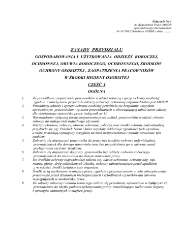 Regulamin pracy MOSiR - załącznik nr 1 - odzież