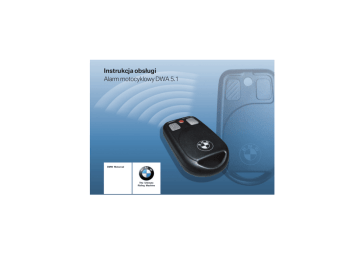 Instrukcja obsługi Alarm motocyklowy DWA 5.1 BMW Motorrad The Ultimate Riding Machine Dane motocykla/dealera Dane motocykla Dane dealera Model Partner do konsultacji w serwisie Numer ramy Pani/Pan Numer koloru Numer telefonu Pierwsza rejestracja Numer rejestracyjny Adres dealera /Telefon (pieczęć firmy) Witamy w BMW Gratulujemy Państwu zakupu alarmu motocyklowego BMW (DWA). Instalacja ta utrudnia potencjalną kradzież motocykla i została tak skonstruowana, aby możliwie najbardziej uprościć jej obsługę. W razie jakichkolwiek pytań dotyczących alarmu motocyklowego DWA, Dealer BMW Motorrad w każdej chwili służy radą i pomocą. Wiele radości z lektury niniejszej instrukcji obsługi i bezpiecznej drogi życzy Państwu BMW Motorrad. Spis treści Aby znaleźć określony temat, można skorzystać ze spisu haseł zamieszczonego na końcu tej instrukcji obsługi. 1 Wskazówki ogólne . . . . . . 3 Przegląd . . . . . . . . . . . . . . . . . . . . . . 4 Skróty i symbole . . . . . . . . . . . . . 4 Aktualność . . . . . . . . . . . . . . . . . . . 4 Dane techniczne . . . . . . . . . . . . . 4 2 Przegląd . . . . . . . . . . . . . . . . . . Ogólne informacje na temat alarmu motocyklowego DWA . . . . . . . . . . . . . . . . . . . . . . . . . Elementy sterownicze . . . . . . . . Karta kodowa . . . . . . . . . . . . . . . . 5 6 6 7 3 Obsługa . . . . . . . . . . . . . . . . . . 9 Aktywowanie . . . . . . . . . . . . . . . . 10 Funkcja alarmu . . . . . . . . . . . . . . 11 Dezaktywowanie . . . . . . . . . . . . 13 Programowanie. . . . . . . . . . . . . . 14 Logowanie pilota . . . . . . . . . . . . 16 Synchronizacja . . . . . . . . . . . . . . 17 Akumulator . . . . . . . . . . . . . . . . . . 18 4 Dane techniczne . . . . . . . . 21 Alarm motocyklowy . . . . . . . . . 22 Pilot . . . . . . . . . . . . . . . . . . . . . . . . . 22 5 Spis haseł . . . . . . . . . . . . . . . 23 Wskazówki ogólne Wskazówki ogólne Przegląd . . . . . . . . . . . . . . . . . . . . . . . . . . . . . 4 Skróty i symbole . . . . . . . . . . . . . . . . . . . . . 4 1 3 Dane techniczne . . . . . . . . . . . . . . . . . . . . . 4 Wskazówki ogólne Aktualność . . . . . . . . . . . . . . . . . . . . . . . . . . . 4 z 1 Wskazówki ogólne 4 z Przegląd W rozdziale 2 niniejszej instrukcji obsługi przedstawiono ogólny zarys informacji na temat alarmu motocyklowego. W rozdziale 3 opisane jest działanie alarmu motocyklowego, w rozdziale 4 wymienione są najważniejsze cechy techniczne układu. Skróty i symbole Oznacza wskazówki ostrzegawcze, których należy bezwzględnie przestrzegać ze względu na bezpieczeństwo własne, bezpieczeństwo innych oraz aby uchronić Twój motocykl przed uszkodzeniem. Szczególne wskazówki w celu ułatwienia pracy przy czynnościach z zakresu obsługi, kontroli i regulacji oraz pracach konserwacyjnych. Oznacza koniec wskazówki. Instrukcja wykonywania czynności. Wynik czynności. Odsyłacz do strony z dalszymi informacjami. Oznacza koniec informacji dotyczącej akcesoriów lub wyposażenia. Moment dociągający. Dane techniczne. Aktualność Wysoki poziom bezpieczeństwa i jakości akcesoriów BMW zapewniony jest dzięki nieustającemu postępowi technicznemu. Z tego też powodu mogą wy- niknąć rozbieżności pomiędzy instrukcją obsługi, a zakupionymi akcesoriami. BMW Motorrad nie może również wykluczyć pomyłek. Prosimy więc o zrozumienie, iż na podstawie danych, ilustracji i opisów nie mogą być wysuwane żadne roszczenia. Dane techniczne Wszystkie dane dotyczące wymiarów, masy i mocy w tej instrukcji obsługi opierają się o wytyczne instytucji Deutsches Institut für Normung e. V. (DIN) i przestrzegają jej przepisów dot. tolerancji. Możliwe są różnice w poszczególnych wersjach krajowych. Przegląd Przegląd Ogólne informacje na temat alarmu motocyklowego DWA . . . . . . . . . . . . . . . . 6 2 5 Elementy sterownicze . . . . . . . . . . . . . . . 6 Przegląd Karta kodowa . . . . . . . . . . . . . . . . . . . . . . . . 7 z 2 Przegląd 6 z Ogólne informacje na temat alarmu motocyklowego DWA W skład alarmu motocyklowego wchodzą immobilizer oraz funkcja alarmu z czujnikiem ruchu. Immobilizer zapobiega niepożądanemu uruchomieniu silnika, natomiast funkcja alarmu powoduje załączenie sygnału alarmowego w przypadku jakiejkolwiek próby ruszenia motocyklem, zmiany jego położenia lub odłączenia akumulatora. Czułość instalacji została ustawiona tak, aby lekkie poruszenie motocykla nie powodowało załączenie się alarmu. Sposób zachowania alarmu motocyklowego można częściowo dopasowywać zgodnie z własnymi upodobaniami. Oszczędzanie akumulatora W celu ochrony akumulatora motocykla i dla podtrzymania zdolności rozruchowej, aktywowany alarm motocyklowy automatycznie wyłącza funkcję alarmu po upływie kilku dni. Alarm pozostaje jednak aktywny przez przynajmniej siedem dni. Immobilizer nie jest wyłączany. prawidłowe działanie, firma BMW Motorrad zaleca, ochronę pilota przed silnymi opadami deszczu. Elementy sterownicze Zakłócenia falami radiowymi Instalacje i urządzenia radiowe, które nadają sygnały na tej samej częstotliwości jak pilot alarmu motocyklowego DWA, mogą zakłócać jego działanie. W przypadku wystąpienia danych problemów należy skierować pilota na motocykl z innego kierunku. 1 Zabezpieczenie przeciwbryzgowe Pilot posiada zabezpieczenie przeciwbryzgowe, jednak nie jest on wodoszczelny. Aby zapewnić Informacja o położeniu diody kontrolnej motocykla umieszczona jest w instrukcji obsługi motocykla. 2 3 4 Lewy przycisk (rowkowany) ( 10) Prawy przycisk ( 12) LED Dioda kontrolna DWA motocykla Alarm motocyklowy dostarczany jest w zalakowanym opakowaniu, w którym znajduje się karta kodowa 1. Na tej karcie kodowanej umieszczony jest numer PIN (zdjąć naklejkę) służący do dezaktywacji alarmu motocyklowego poprzez zapłon. Numer PIN wybity jest na alarmie motocyklowym w zaszyfrowanej formie i dodatkowo um