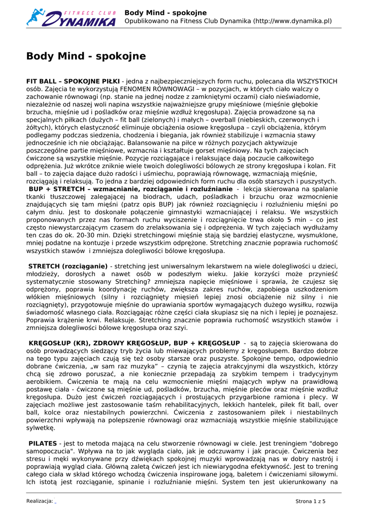 Body Mind - spokojne - Fitness Club Dynamika