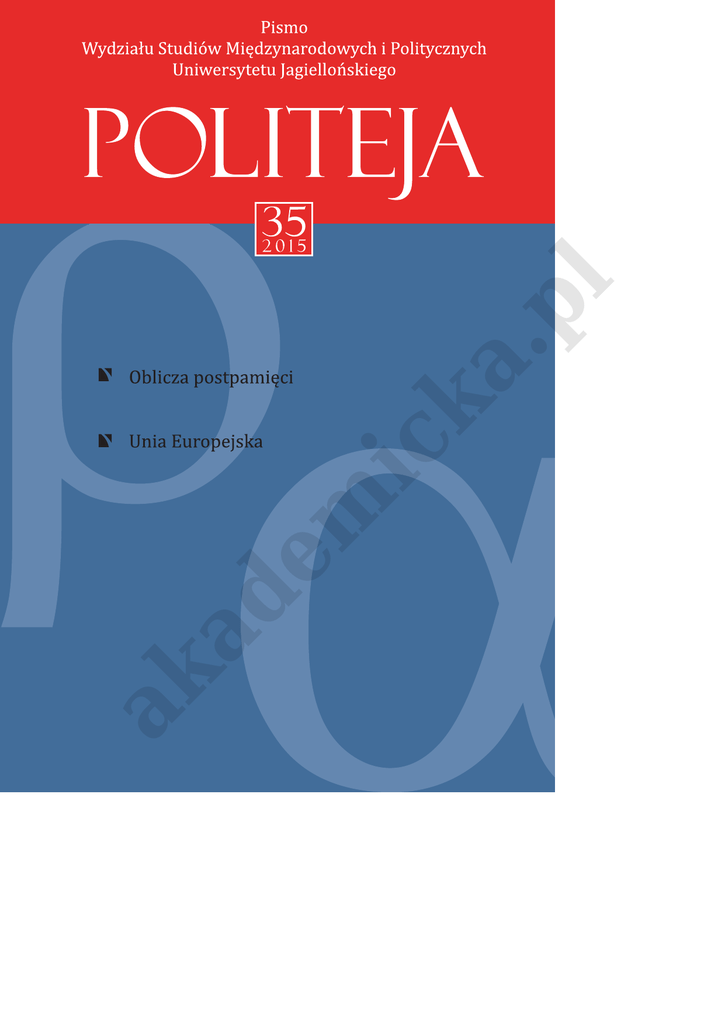 ad e ak ic ka . m pl Wydawca: Fundacja Centrum Dokumentacji Czynu Niepodległościowego Al. Mickiewicza 22, 30-059 Kraków e-mail: [email protected] Dystrybucja: www.akademicka.pl ISSN 1733-6716 ad e Redakcja tekstów: Justyna Wójcik pl „Politeja. Pismo Wydziału Studiów Międzynarodowych i Politycznych Uniwersytetu Jagiellońskiego” ul. Piłsudskiego 13, pok. 209 31-110 Kraków tel.: 12 663 34 74, fax: 12 421 53 65 [email protected] www.politeja.wsmip.uj.edu.pl ic ka . Publikacja wydana w dwóch wersjach: elektronicznej i drukowanej. Wersją pierwotną jest format elektroniczny m Publikacja wydana dzięki pomocy de minimis z Ministerstwa Nauki i Szkolnictwa Wyższego oraz środkom Wydziału Studiów Międzynarodowych i Politycznych UJ. Recenzenci Saad Abudayeh ( Jordan University) Małgorzata Abassy (Uniwersytet Jagielloński) Roman Bäcker (Uniwersytet Mikołaja Kopernika w Toruniu) Monika Banaś (Uniwersytet Jagielloński) Marek Bankowicz (Uniwersytet Jagielloński) Włodzimierz Bernacki (Uniwersytet Jagielloński) Piotr Biliński (Uniwersytet Jagielloński) Maksim Bulachtin (Perm University) Artur Demchuk (Lomonosov Moscow State University) Joachim Diec (Uniwersytet Jagielloński) Katarzyna Duda (Uniwersytet Jagielloński) Andrzej Dudek (Uniwersytet Jagielloński) Wojciech Kaute (Uniwersytet Śląski w Katowicach) Paulina Kewes (University of Oxford) Wawrzyniec Konarski (Uniwersytet Jagielloński) Leszek Korporowicz (Uniwersytet Jagielloński) Bogdan Koszel (Uniwersytet im. Adama Mickiewicza w Poznaniu) Krzysztof Kościelniak (Uniwersytet Jagielloński) Barbara Krauz-Mozer (Uniwersytet Jagielloński) Marek Maciejewski (Uniwersytet Wrocławski) Gerhard Meiser (Universität Halle) Włodzimierz Mich (Uniwersytet Marii Curie Skłodowskiej w Lublinie) Tadeusz Paleczny (Uniwersytet Jagielloński) Andrzej Porębski (Uniwersytet Jagielloński) Jarosław Rokicki (Krakowska Akademia im. Andrzeja Frycza Modrzewskiego) Andrzej Sakson (Uniwersytet im. Adama Mickiewicza w Poznaniu) Andrea Schmidt (Pecs University) Mieczysław Smoleń (Uniwersytet Jagielloński) Barbara Stoczewska (Uniwersytet Jagielloński) Lucjan Suchanek (Państwowa Wyższa Szkoła Zawodowa w Oświęcimiu) Krzysztof Szczerski (Uniwersytet Jagielloński) Dariusz Szpoper (Uniwersytet Gdański) Przemysław Turek (Uniwersytet Jagielloński) Janusz J. Węc (Uniwersytet Jagielloński) Howard Williams (Aberystwyth University) Ryszard Zięba (Uniwersytet Warszawski) Projekt okładki: Łukasz Fyderek Typografia, skład i łamanie: ak www.anatta.pl Nakład: 150 egz. „Politeja” jest c Uniwersytetu J tycznych i kult z ośrodków nau nych i nierozpa recenzji książek Ostateczna dec nego wyniku a spośród specjal Wymagania 1. Teksty w 2. Artykuł wraz z p nego m 3. Oprócz nych w 4. Na pier 5. W tekśc wraz z p 6. W przy 7. Prosimy 8. Przypis stronie 9. Autorzy dwóch t uzupełn 10.Po zaak twem K Pismo Wydziału Studiów Międzynarodowych i Politycznych Uniwersytetu Jagiellońskiego POLITEJA Kraków 2015 ad e m ic ka . RADA PROGRAMOWA Prof. Jerzy Axer (Uniwersytet Warszawski) Prof. Andrea Ciampani (LUMSA, Roma) Prof. Břetislav Dančak (Masaryk University, Brno) Prof. Rahul Peter Das (Martin-Luther-Universität Halle-Wittenberg) Prof. Taras Finikov (KROK University, Kyiv) Prof. Saleh K. Hamarneh ( Jordan University) Prof. Ferenc Hörcher (Pázmány Péter Catholic University, Budapest) Prof. Alvydas Jokubaitis (Vilnius University) Prof. Wiesław Kozub-Ciembroniewicz (Instytut Nauk Politycznych i Stosunków Międzynarodowych UJ) Prof. Zdzisław Mach (Instytut Europeistyki UJ) Prof. Andrzej Mania (Instytut Nauk Politycznych i Stosunków Międzynarodowych UJ) Prof. Tadeusz Paleczny (Instytut Studiów Międzykulturowych UJ) Prof. Dorota Praszałowicz (Instytut Amerykanistyki i Studiów Polonijnych UJ) Prof. Anna Raźny (Instytut Rosji i Europy Wschodniej UJ) Prof. John Robertson (Cambridge University) Prof. Irena Stawowy-Kawka (Instytut Nauk Politycznych i Stosunków Międzynarodowych UJ) Prof. Noël O’Sullivan (University of Hull) Prof. Adam Walaszek (Instytut Amerykanistyki i Studiów Polonijnych UJ) Prof. Andrey Yuriyevich Shutov (Lomonosov Moscow State University) Prof. Andrzej Zięba (Instytut Nauk Politycznych i Stosunków Międzynarodowych UJ) pl Nr 3 (35) REDAKTOR NACZELNY CZASOPISMA Prof. Bogdan Szlachta (Instytut Nauk Politycznych i Stosunków Międzynarodowych UJ) ak SEKRETARZ REDAKCJI CZASOPISMA Dr hab. Dorota Pietrzyk-Reeves (Instytut Nauk Politycznych i Stosunków Międzynarodowych UJ) Dr Arkadiusz Górnisiewicz (Instytut Nauk Politycznych i Stosunków Międzynarodowych UJ) Spis treści Oblicza postpamięci pod redakcją Małgorzaty Gaszyńskiej-Magiery i Wojciecha Mazura Od redaktorów 7 Joanna Tokarska-Bakir, Prospero i Kurz w lustrze pamięci. Przeniesieniowe pozycje sprawcy, ofiary i świadka w polskim dyskursie publicznym drugiej dekady xxi wieku 27 Jan Kajfosz, Obraz przeszłości w percepcji magiczno‑mitycznej, czyli pamięć w działaniu 41 Jan Grosfeld, Pamięć w tradycji żydowskiej i chrześcijańskiej 53 Paweł Plichta, Zwój Estery a Szoa. Biblijne, sensacyjne i atrakcyjne oblicze postpamięci 71 Marek Kaźmierczak, Hipertekst jako medium postpamięci. Uwagi na przykładzie wpisów dotyczących Holokaustu na stronach serwisu twitter.com 91 Magdalena Banaszkiewicz, Tanatoturystyka: doświadczenie, pamięć, etyka ic ka . pl 5 m 105 Joanna Kabrońska, „Jeśli my zapomnimy, kto będzie pamiętał?”. Dzieło sztuki jako manifestacja postpamięci 123 Dorota Sajewska, Ciało jako medium postpamięci ad e 133 Grzegorz Rytel, Czas zawarty w przestrzeni. Architektura współczesnych założeń upamiętniających 143 Aurelia Kotkiewicz, Dom nad rzeką Moskwą jako architektoniczny i literacki znak pamięci ak 157 Małgorzata Okupnik, „Czy to jest zamiast, w zastępstwie Zagłady?”. O postpamięci w sytuacji śmiertelnej choroby 171 Sylwia Karolak, Utwory o matkach i córkach. Kobiece narracje postmemorial