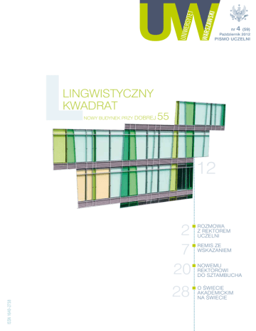 nr 4 (59) Październik 2012 PISMO UCZELNI L LINGWISTYCZNY KWADRAT nowy budynek przy Dobrej 55 ISSN 1640-2758 12 2 7 20 28 JJ ROZMOWA Z REKTOREM UCZELNI JJ REMIS ZE WSKAZANIEM JJ NOWEMU REKTOROWI DO SZTAMBUCHA JJ O ŚWIECIE AKADEMICKIM NA ŚWIECIE Prof. Marcin Pałys i dziekan Wydziału Fizyki prof. Teresa Rząca-Urban „Dowiadujemy się, że pani minister po lekturze notatki w gazecie codziennej, zastanawia się, czy przyznane właśnie nakłady na wzrost wynagrodzeń dla naukowców rzeczywiście im się należą. Czy minister wiedzę o poziomie nauki rzeczywiście czerpie z prasy?” ROZMOWA UW 2. UCZELNIE SĄ USTAWIANE W ROLI NIESFORNEGO DZIECKA z prof. Marcinem Pałysem, rektorem UW rozmawia Anna Korzekwa PA Ź D Z I E R N I K 2 0 1 2 Uniwersytet Warszawski 4 / 59 REDAGUJĄ: Anna Korzekwa, Olga Basik, Katarzyna Łukaszewska, Katarzyna Majewska, Izabela Wołczaska ZDJĘCIA (jeśli nie zaznaczono inaczej): Mirosław Kaźmierczak ADRES REDAKCJI: Biuro Prasowe Uniwersytetu Warszawskiego Krakowskie Przedmieście 26/28 00-927 Warszawa tel. (+48 22), 55 20 740, 55 24 066 e-mail: [email protected] www.pismo-uczelni.uw.edu.pl STALE WSPÓŁPRACUJĄ: dr Robert Gawkowski, dr Hubert Kowalski, prof. Marcin Kula, prof. Jerzy Miziołek, prof. Wojciech Tygielski, prof. Andrzej Udalski WYDAWCA: Wydawnictwa UW, Nowy Świat 4, 00-497 Warszawa PROJEKT GRAFICZNY, SKŁAD I ŁAMANIE: Anna Zagrajek, Magdalena Popiel-Krawczyk Studio Układanka DRUK: Drukarnia POZKAL Nakład: 6 000 egz. Redakcja zastrzega sobie prawo do redagowania, dokonywania skrótów oraz odmowy publikacji nadesłanych materiałów. Redakcja nie odpowiada za treść reklam. OKŁADKA: Fragment elewacji budynku przy ul. Dobrej 55, fot. M. Kaźmierczak. WYDARZENIA 5. W DOBREJ KONDYCJI Anna Korzekwa 6. POZA STREFĄ CISZY Izabela Wołczaska 6. Z TYTUŁEM PRZEZ OCEAN Olga Basik 7. REMIS ZE WSKAZANIEM Katarzyna Majewska 8. NOMINACJE PROFESORSKIE 9. KALEJDOSKOP 11. EUROPEJSKO-INDIAŃSKIE ZDERZENIE KULTUR Katarzyna Majewska INWESTYCJE 12. LINGWISTYCZNY KWADRAT Olga Basik 15. PRZERWA PRACUJĄCA Olga Basik PREZENTACJE 16. ELEKTRONICZNE REDAGOWANIE Katarzyna Majewska 18. OCHRONA GWARANTOWANA Olga Basik OPINIE 20. NOWEMU REKTOROWI DO SZTAMBUCHA Marcin Kula 26. MEDYTACJE PROF. LAJKONIKA – Uniwersytet? 27. PRZEGLĄD PRASY 28. WAKACYJNE PODRÓŻE. O ŚWIECIE AKADEMICKIM NA ŚWIECIE Izabela Wagner BADANIA 33. W SOCZEWCE Katarzyna Majewska 36. ISLAMOFOBIA BEZ MUZUŁMANÓW Olga Basik NA TRAKCIE 38. Z KANTEM CZY BEZ? Ewa Perlińska-Kobierzyńska UNIWERSYTET W LICZBACH 40. DOBRZE POLICZONE Olga Basik 40. ZDARZYŁO SIĘ W TYM MIESIĄCU Robert Gawkowski DZIEJE UW 41. POCZET REKTORÓW Robert Gawkowski 42. ATMOSFERA DLA ARTYSTÓW Jerzy Miziołek, Hubert Kowalski 44. ODESZLI W NUMERZE U UCZELNIE SĄ UCZEL USTAWIANE W ROLI USTAW NIESFORNEGO DZIECKA NIESFO Z prof. Marcinem Pałysem, rektorem Uniwersytetu rozmawia Anna Korzekwa Przed wakacjami dużo się mówiło o perspektywach absolwentów na rynku pracy. Uczelnie oskarżono o to, że zmieniły się w fabryki bezrobotnych, bo poziom oferowanego przez nie kształcenia sięgnął dna. N ie można rozpatrywać sytuacji absolwentów w oderwaniu od kondycji gospodarki. W czasie kryzysu, gdy liczba miejsc pracy się zmniejsza, nawet najlepsze programy kształcenia nie są w stanie zapewnić im zatrudnienia. To nie uczelnie kształtują rynek pracy. Dyskusja o losach absolwentów, która toczyła się na łamach gazet – obfitująca w sądy pobieżne i przypadkowe – wybuchła i znikła w ciągu miesiąca. Teraz codziennie czytamy o „mizerii” polskiej nauki. I jak zwykle w takich przypadkach, pretekstem do lawiny niepochlebnych artykułów jest jedna albo kilka emocjonalnych wypowiedzi, opartych na pojedynczych zdarzeniach. Można by nawet spróbować przejść nad tym do porządku dziennego – zrzucając wszystko na naturę mediów – gdyby nie słowa pani minister odpowiedzialnej za sprawy nauki i szkolnictwa wyższego. Oto ze strony internetowej resortu dowiadujemy się, że pani minister, po lekturze notatki w gazecie codziennej, zastanawia się, czy przyznane właśnie nakłady na wzrost wynagrodzeń dla naukowców rzeczywiście im się należą. Czy minister wiedzę o poziomie nauki rzeczywiście czerpie z prasy, a gazeta staje się wyrocznią w sprawie jakości badań? Wygląda to tak, jakby polityka MNiSW była zależna głównie od tego, co pojawi się w prasie albo w internecie. Może więc uczelnie, zamiast koncentrować się na pracy, powinny skupić się na dyskusji na łamach gazet, bo to, co jest w nich opublikowane, wpływa na kierunek zmian proponowanych przez resort. Relacje między ministrem nauki i szkolnictwa wyższego a uczelniami powinny być rela- Uniwersytety świetnie sobie radziły już w czasach, kiedy jeszcze nie było ministerstw, w tym ministerstwa odpowiedzialnego za sprawy nauki ROZM OWA U W. 2 cjami partnerów mających wspólny cel. Tymczasem ministerstwo widzi siebie w roli rodzica, a uczelnie w roli niesfornego dziecka, które trzeba upominać i strofować, bo samo sobie nie poradzi albo zrobi sobie krzywdę. Chociaż, jeśli spojrzymy na historię, to uniwersytety świetnie sobie radziły już w czasach, kiedy jeszcze nie było ministerstw, w tym ministerstwa odpowiedzialnego za sprawy nauki. W sprawie absolwentów – na zaproszenie pani minister – odbył się przecież „okrągły stół” z udziałem nowych rektorów i pracodawców. P rzy takiej formule spotkania poruszono tylko kilka ogólnych zagadnień. Przyjęto deklarację. Potem była konferencja prasowa. W sprawie absolwentów niewiele się zmieniło. Widzi Pan jakąś szansę na zmianę tej sytuacji? O d lat działa Konferencja Rektorów Akademickich Szkół Polskich aktywnie pracująca na rzecz zmian. Warto, by jej opracowania były traktowane poważnie. Na razie relacje z Konferencją mają charakter trochę fasadowy – ministerstwo pyta KRASP o opinię w różnych sprawach dotyczących szkół wyższych i n