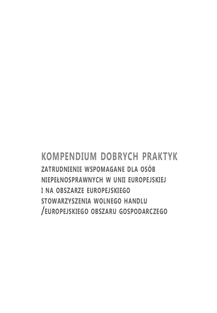 kompendium dobrych praktyk zatrudnienie wspomagane dla osób niepełnosprawnych w unii europejskiej i na obszarze europejskiego stowarzyszenia wolnego handlu / europejskiego obszaru gospodarczego POLSKIE FORUM OSÓB NIEPEŁNOSPRAWNYCH kompendium dobrych praktyk zatrudnienie wspomagane dla osób niepełnosprawnych w unii europejskiej i na obszarze europejskiego stowarzyszenia wolnego handlu / europejskiego obszaru gospodarczego COWI we współpracy z WRI i EUSE Tytuł oryginału: Compendium of good practice. Supported Employment for people with disabilities in the EU and EFTA-EEA ©Unia Europejska, 2011 Badanie zostało przeprowadzone przez COWI we współpracy z Instytutem Pracy (Work Research Institute - WRI) i Europejską Unią Zatrudnienia Wspomaganego (European Union of Supported Employment - EUSE) Tłumaczenie z języka angielskiego: Tomasz Korybski. Tłumaczenia Ustne i Pisemne. Szkolenia Językowe Redakcja i korekta: Halina Drachal Opracowanie graficzne: Julia Roczan Skład i łamanie: JP ISBN: 978-83-64280-26-9 Copyright © by Polskie Forum Osób Niepełnosprawnych, 2013 Wydawca: Polskie Forum Osób Niepełnosprawnych ul. Ogrodowa 28/30 lok. 416 00-896 Warszawa www.pfon.org Publikacja bezpłatna Publikacja zrealizowana w ramach projektu „Trener pracy jako sposób na zwiększenie zatrudnienia osób niepełnosprawnych”. Projekt realizowany przez Państwowy Fundusz Rehabilitacji Osób Niepełnosprawnych w partnerstwie z Polskim Forum Osób Niepełnosprawnych, Polską Organizacją Pracodawców Osób Niepełnosprawnych oraz KARE Promoting Inclusion for People with Intellectual Disabilities z Irlandii. S pis treści 1. S treszczenie 2. W prowadzenie 3. D obre praktyki zatrudnienia wspomaganego 3.1 T worzenie miejsc pracy i wspieranie na stanowisku pracy . H iszpania 3.2 S pecjalistyczne wsparcie dla określonej grupy docelowej . A ustria 3.3 K ompleksowe profilowanie zawodowe . I rlandia P ółnocna 3.4 W sparcie w pracy i poza nią . C zechy 3.5 I nne środki ułatwiające integrację . N orwegia 3.6 D opasowywanie potrzeb zatrudnionego i jego pracodawcy . H iszpania 3.7 D opasowanie stanowiska pracy w środowisku wiejskim . S zkocja 3.8 W sparcie dla kolegów i koleżanek z pracy . C zechy 3.9 K oordynacja wsparcia zewnętrznego i wewnętrznego . A ustria 3.10 A ktywne wsparcie i środki towarzyszące . S zwecja 7 8 9 9 12 16 21 24 28 31 34 38 42 4. O bserwacje ogólne 47 Z ałącznik : M etodyka i przewodnik do wywiadów 52 kompendium dobrych praktyk zatrudnienie wspomagane dla osób niepełnosprawnych ... 1. S treszczenie 7 Pokazane w raporcie przykłady dobrych praktyk wspierania aktywności zawodowej osób niepełnosprawnych stanowią część badania dotyczącego zatrudnienia wspomaganego w krajach Europejskiego Obszaru Gospodarczego oraz należących do Europejskiego Stowarzyszenia Wolnego Handlu. Badaniem ogólnym objęto 30 państw. Szczegółową analizę przeprowadzono w sześciu z nich: Austrii, Czechach, Norwegii, Hiszpanii, Szwecji oraz Wielkiej Brytanii i Irlandii Północnej. W poniższym kompendium przykładów dobrych praktyk aktywizacji zawodowej osób niepełnosprawnych zostały zaprezentowane autentyczne doświadczenia dziesięciu pracodawców oraz dziesięciu pracowników działających według modelu zatrudnienia wspomaganego. Przedstawione przykłady pokazują również doświadczenia trenerów pracy, a także politykę w różnych państwach wspierającą mechanizm zatrudnienia wspomaganego. We wszystkich opisanych przypadkach najważniejszym czynnikiem, stanowiącym klucz do sukcesu, była rola agencji zatrudnienia wspomaganego, a zwłaszcza działania trenera pracy. W większości przykładów dobrych praktyk zatrudniania osób niepełnosprawnych stanowiska pracy były aranżowane specjalnie, co dowodzi, że tworzenie miejsc pracy jest bardzo istotnym aspektem zatrudnienia wspomaganego. W wielu sytuacjach praktyki mające na celu sprawdzenie predyspozycji zawodowych oraz krótkoterminowe staże okazywały się korzystne zarówno dla pracodawcy, jak i dla potencjalnego pracownika. Niektóre przykłady świadczą też o tym, jak skuteczne jest długoterminowe podejście strategiczne do zatrudnienia wspomaganego. Chociaż przepisy prawne są bez wątpienia ważne dla samego istnienia zatrudnienia wspomaganego w danym kraju, w konkretnych sytuacjach głównym powodem pozytywnego nastawienia do niego pracodawców była pewność, że trener pracy weźmie czynny udział w procesie wdrażania pracownika, dzięki czemu odpowiedzialność za niego nie spocznie wyłącznie na zatrudniającym. Wyraźnie też widać, że rozmaitość środków towarzyszących, zwłaszcza dofinansowanie płac, może ułatwić proces zatrudnienia wspomaganego. Przyczynia się bowiem do poprawy motywacji pracodawcy i możliwości zatrudniania osób z ograniczonymi zdolnościami do pracy. Kwestia dofinansowania wynagrodzenia wymaga nadzoru kompetentnego trenera pracy. O znalezieniu i utrzymaniu płatnej pracy dla klientów zatrudnienia wspomaganego na otwartym rynku pracy decyduje ścisła współpraca pomiędzy usługodawcami zatrudnienia wspomaganego a usługodawcami zewnętrznymi, jak również udzielanie zindywidualizowanego wsparcia pracodawcy oraz pracownikowi. 8 COWI we współpracy z WRI i EUSE 2. W prowadzenie Badacze opisanych przypadków dobrych praktyk pozyskiwali informacje bezpośrednio od osób, które znalazły płatną posadę na otwartym rynku pracy za pośrednictwem agencji zatrudnienia wspomaganego, od ich pracodawców, instytucji będących dostawcami usług oraz od trenerów pracy. Przytoczone w raporcie przykłady dobrej praktyki wspierania aktywności zawodowej osób niepełnosprawnych stanowią część badania dotyczącego zatrudnienia wspomaganego tych osób w strefie Europejskiego Obszaru Gospodarczego – na terenie krajów Unii Europejskiej oraz w państwach należących do Europejskiego Stowarzyszenia Wolnego Handlu. Badaniem ogólnym objęto 30 krajów, w