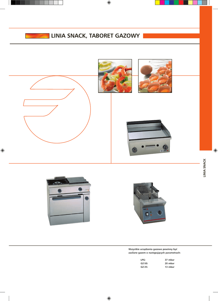 LINIA SNACK LINIA SNACK, TABORET GAZOWY Wszystkie urządzenia gazowe powinny być zasilane gazem o następujących parametrach: LPG: GZ-50: GZ-35: 37 mbar 20 mbar 13 mbar LINIA SNACK, TABORET GAZOWY URZĄDZENIA SNACK Urządzenia grzewcze do baru czy kawiarni, o właściwościach urządzeń najwyższej klasy. ŁATWOŚĆ W UŻYTKOWANIU Ergonomiczne sterowanie, pokrętła umieszczone w górnej części umożliwiające pracę w odpowiedniej pozycji. Łatwe odpalanie i użytkowanie. Elementy sterowania dostępne od frontu. Lampki kontrolne w urządzeniach elektrycznych. ZASILANIE Palniki o największej mocy na rynku: 4,6 kW i 9,3 kW. Frytownice o dużej mocy na 1 l oleju i dużej wydajności. Wysoka sprawność i efektywne rozprowadzenie ciepła w płytach bezpośredniego smażenia. Szybkie odzyskiwanie temperatury płyty. JAKOŚĆ HIGIENA Wyprodukowane zgodnie z dyrektywami CE dla urządzeń gazowych i elektrycznych. Tace ociekowe łatwe w czyszczeniu i o dużej pojemności. Wykonane przy użyciu certyfikowanych komponentów. Wykonane ze stali nierdzewnej AISI-304 (18/!0). Satynowana powierzchnia ze stali nierdzewnej. Śruby umieszczone w sposób niewidoczny dla użytkownika. 88 Linia SNACK Indywidualne misy pod każdym z palników. Zaokrąglone narożniki dla łatwiejszego czyszczenia. KUCHNIE SNACK Kuchnie Gazowe – Topy Wszystkie palniki o charakterystycznej budowie: 2 korony (wewnętrzna i zewnętrzna), zapewniające dużą moc i wysoką sprawność. Palniki nawierzchniowe z zaworami bezpieczeństwa i termoparami. Ruszty, płyty grzewcze i palniki wykonane z żeliwa. Urządzenia wykonane ze stali nierdzewnej AISI-304 (18/10). Rynny ociekowe pod palnikami na tłuszcze, łatwo wyjmowane, stanowiące integralną część urządzenia. Model CG-200S CG-200S SP CG-300S CG-300S SP Kuchnie Gazowe Nr referencyjny 1120400815 LPG 1120400820 Nat 1120400865 LPG 1120400866 Nat 1120400715 LPG 1120400720 Nat 1120400765 LPG 1120400766 Nat z CG-300 S CG-200 S SP Płyta grill. Moc Wymiary (mm) Cena 4,6 Palniki (kW) 7,0 4,6 kW kW szer./gł./wys. netto zł - 1 1 11,6 850x585x270 3.540,- 1 1 - 11,6 850x585x270 3.560,- 1 1 1 16,2 1,270x585x270 4.730,- 2 1 - 16,2 1,270x585x270 4.750,- Piekarnikiem Wszystkie palniki o charakterystycznej budowie: 2 korony (wewnętrzna i zewnętrzna), zapewniające dużą moc i wysoką sprawność. Palniki nawierzchniowe z zaworami bezpieczeństwa i termoparami. Ruszty, płyty grzewcze i palniki wykonane z żeliwa. Urządzenia wykonane ze stali nierdzewnej AISI-304 (18/10). Rynny ociekowe pod palnikami na tłuszcze, łatwo wyjmowane, stanowiące integralną część urządzenia. Piekarnik gazowy z rusztem GN 1/1 o mocy 5,8 kW sterowany termostatem w zakresie (130–350 °C). Model CG-210 CG-210 G CG-310 CG-310 G Nr referencyjny 1120400645 LPG 1120400650 Nat 1120400630 LPG 1120400635 Nat 1120400545 LPG 1120400550 Nat 1120400530 LPG 1120400535 Nat CG-310 Palniki (kW) Piekarnik Moc Wymiary (mm) Cena NC kW szer./gł./wys. netto zł - - 17,44 850x585x8500 4.840,- 1 1 - 17,44 850x585x8500 5.130,- 1 1 - 1 22,09 1,270x585x850 6.160,- 1 1 1 1 22,09 1,270x585x850 6.450,- 4,6 7,0 1 1 1 1 1 2 2 Grill : Urządzenie z elektrycznym grillem o mocy 2,0 kW nad piekarnikiem 5,8 kW Grill NC : Szafka neutralna. Akcesoria Nr referencyjny Opis Cena netto zł U565406000 PŁASKA PŁYTKA do palników o mocy 4,6 kW - 425 x 350 mm 420,- U565403000 RUSZT do palników nawierzchniowych - 425 x 350 mm 455,- Linia SNACK 89 PŁYTY GRILLOWE SNACK, TABORET GAZOWY Płyty Grillowe Gazowe Płyty grillowe w trzech różnych wariantach: gładkie, ryflowane lub mieszane. Palniki pod płytą grillową wykonane ze stali nierdzewnej z płomieniem kontrolnym i termoparą. Temperatura płyty sterowana termostatem w zakresie temperatur 120–310 °C. Urządzenia wykonane ze stali nierdzewnej AISI-304 (18/10). Zbiornik tłuszczu o dużej objętości znajdujący się pod płytą grillową PL-105 C Model PL-105 L PL-105 C PL-110 L PL-110 R PL-110 L+R PL-110 C L : R : L+R : Nr referencyjny 1120200200 LPG 1120200201 Nat 1120200203 LPG 1120200204 Nat 1120200300 LPG 1120200301 Nat 1120200309 LPG 1120200310 Nat 1120200303 LPG 1120200304 Nat 1120200306 LPG 1120200307 Nat PL-110 L+R Moc Wymiary (mm) Cena Typ (*) Strefy Płyta dm2 kW szer./gł./wys. netto zł L 2 30 9,30 600x550x250 2.720,- L/C 2 30 9,30 600x550x250 4.110,- L 3 45 13,95 900x550x250 3.810,- R 3 45 13,95 900x550x250 4.560,- L+R 3 45 13,95 900x550x250 4.055,- L/C 3 45 13,95 900x550x250 5.810,- Płyta gładka. Płyta ryflowana. 1/2 gładka -1/2 ryflowana. C : Płyta stalowa pokryta 50 mikronową warstwą chromu. Taborety Gazowe Palnik dwukoronowy z czterema pierścieniami płomienia. Palnik i ruszt odlewany z żeliwa. Odpalanie palnika głównego od palnika kontrolnego zabezpieczonego termoparą i zaworem odcinającym na wypadek zaniku płomienia. Solidna i masywna konstrukcja wytrzymująca znaczne obciążenia. Podstawa wykonana ze stali nierdzewnej AISI-304(18/10). Model HPG-15 90 Linia SNACK Nr referencyjny 1121600100 LPG 1121600101 Nat Moc Wymiary (mm) Cena kW szer./gł./wys. netto zł 15,87 615x615x400 2.520,- FRYTOWNICE SNACK Frytownice Elektryczne Temperatura pracy regulowana termostatem w zakresie 60°–200 °C. Lampka kontrolna grzania. Elementy grzejne wykonane ze stali nierdzewnej. Mikrowyłącznik zabezpieczający przed włączeniem w przypadku uniesionych grzałek. Zasilanie elektryczne: 230V (dotyczy FE-4) lub 400 V (dotyczy FE-6 i FE-8). Urządzenia wykonane ze stali nierdzewnej AISI-304 (18/10). FE-4 Model Nr referencyjny Pojemność - litry FE-6 FE-8 Moc Wymiary (mm) Cena Całkowita Olej Zimn. strefa kW szer./gł./wys. netto zł FE-4 1120901100 4 4 - 3,00 175 x 485 x 270 1.130,- FE-6 1120901210 6 6 - 4,50 265 x 485 x 270 1.710,- FE-8 1120901310 8 8 - 6,00 355 x 485 x 270 1.930,- Frytownice Elektryczne na Podstawach Temperatura pracy regulowana termostatem w zakresie 60–200 °C. Lampka kontrolna grzania. Elementy grzejne wykonane ze stali nierdzewnej. Mikr